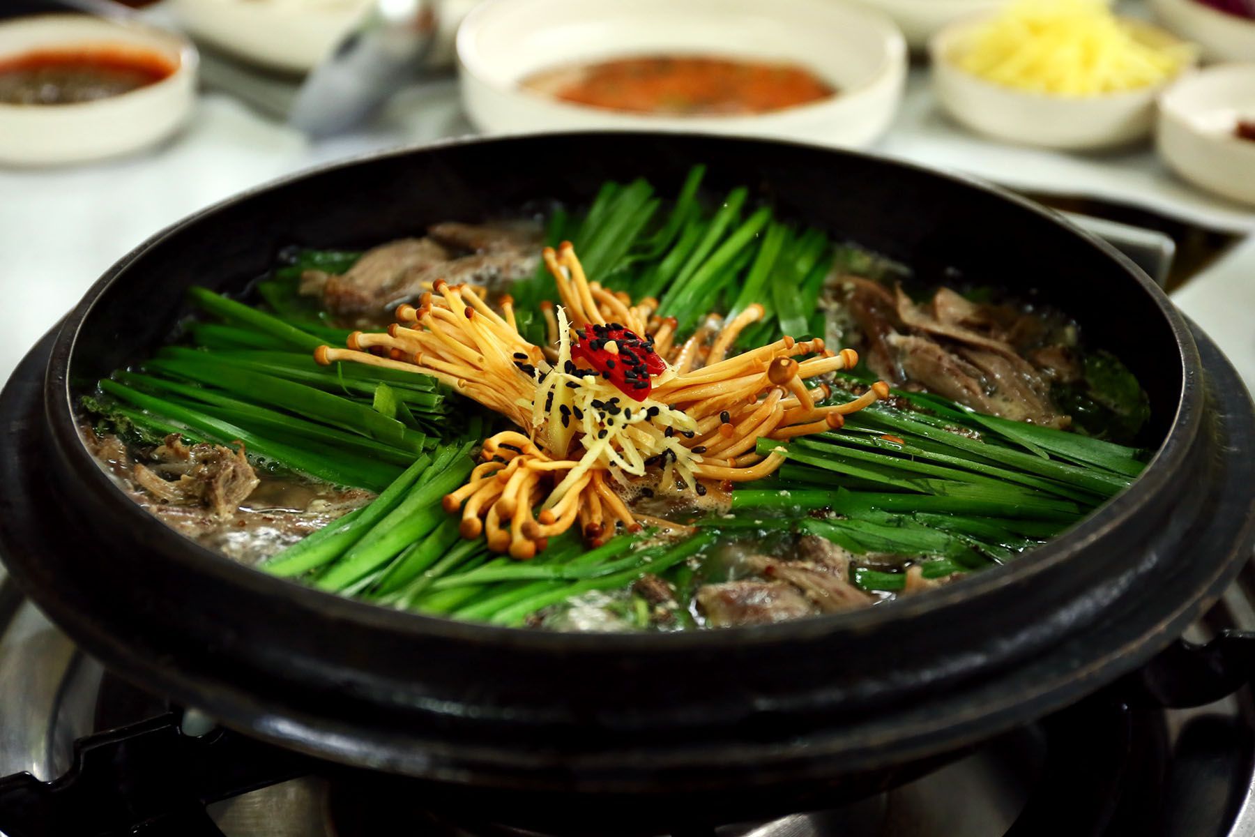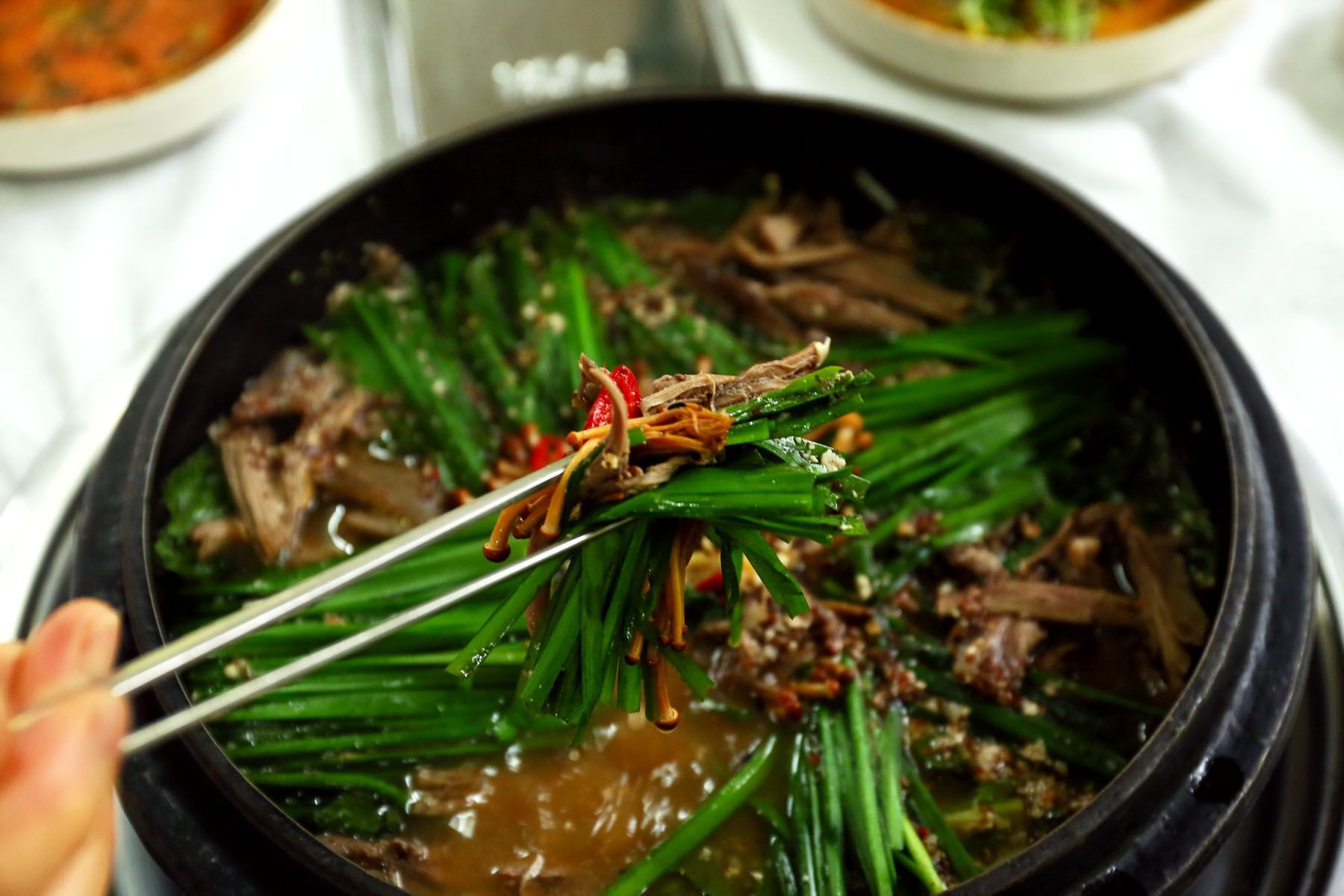 자작하고 진한 국물과 야들야들한 고기가 일품 '염소전골' 입니다.