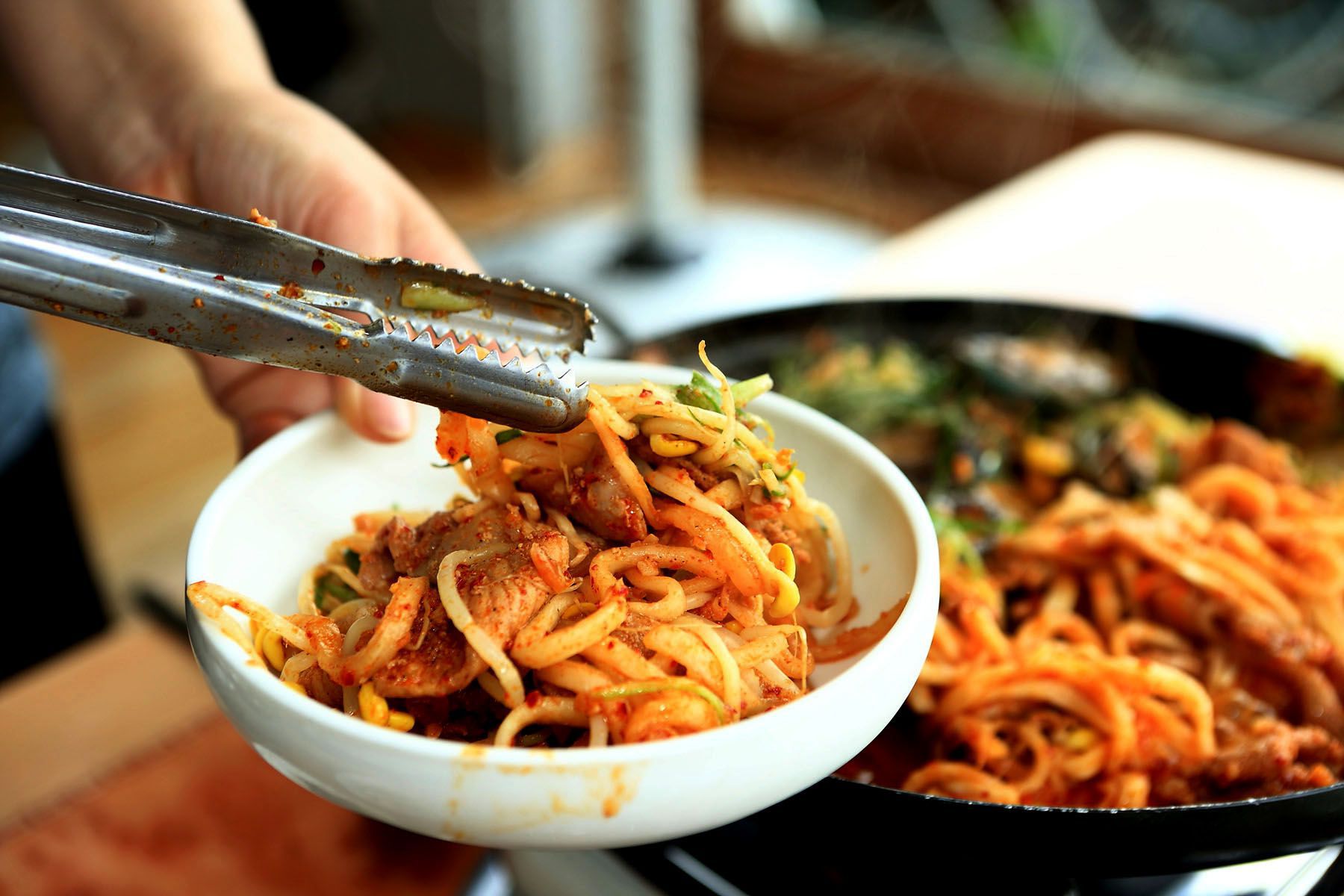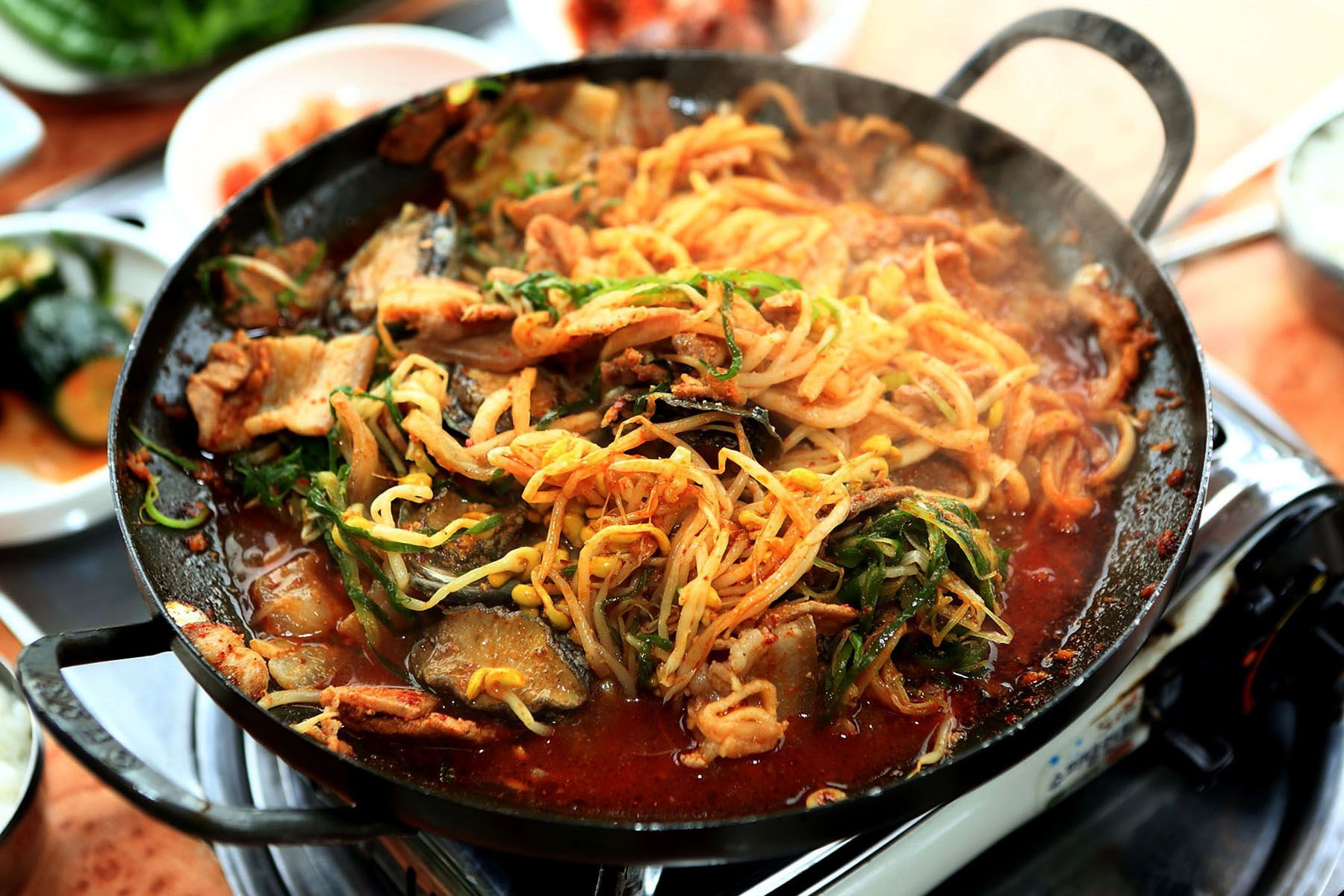 다양한 재료가 잘 어우러진 맛이 일품인 '흑돼지전복두루치기' 입니다.