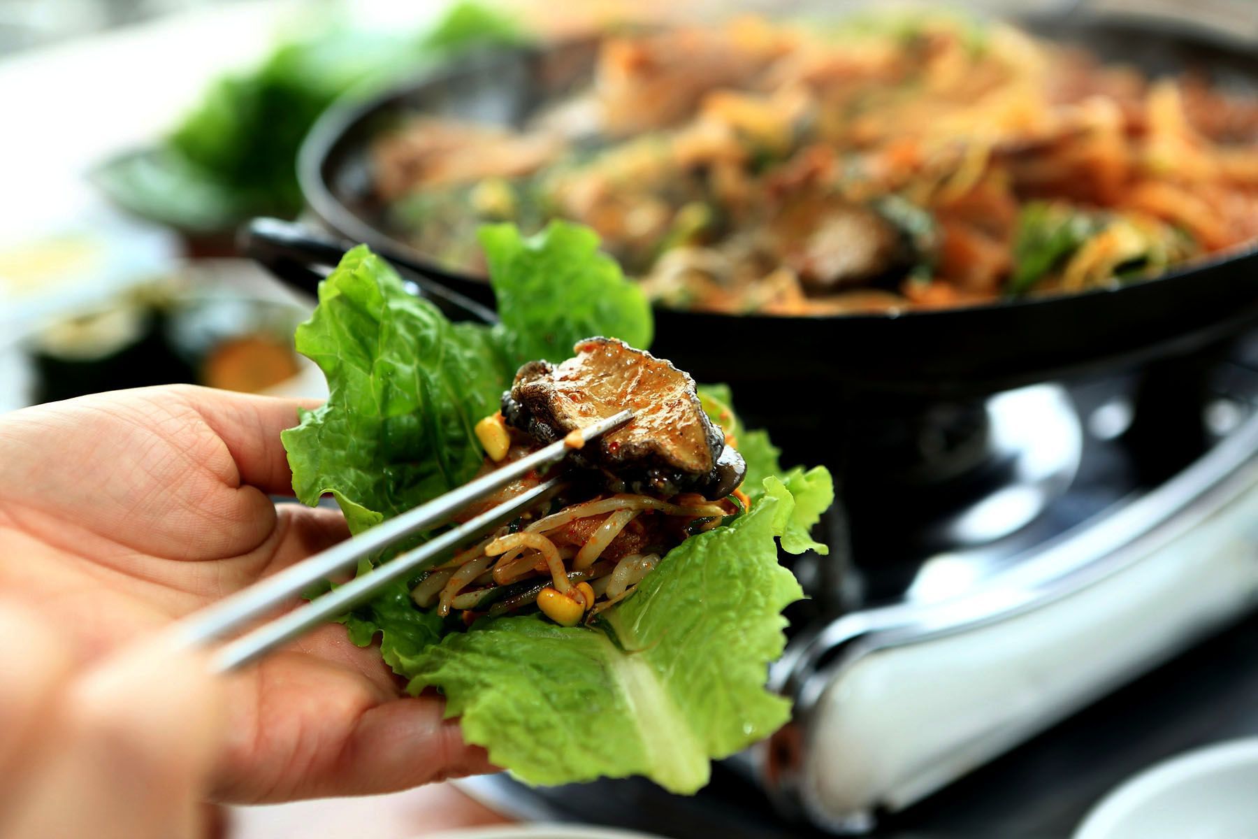 그냥 드셔도 맛있는 두루치기는 쌈을 싸서 푸짐하게 드시면 더욱 맛있습니다.