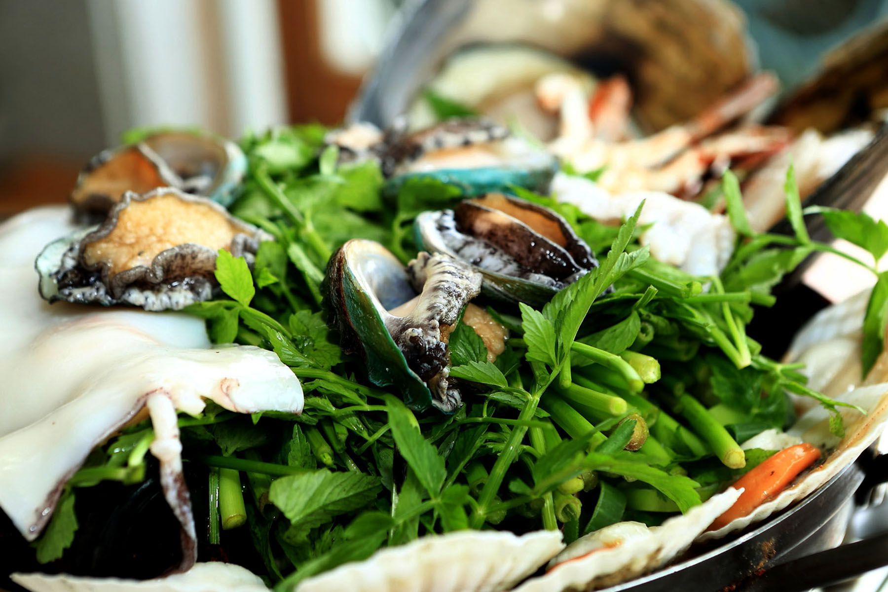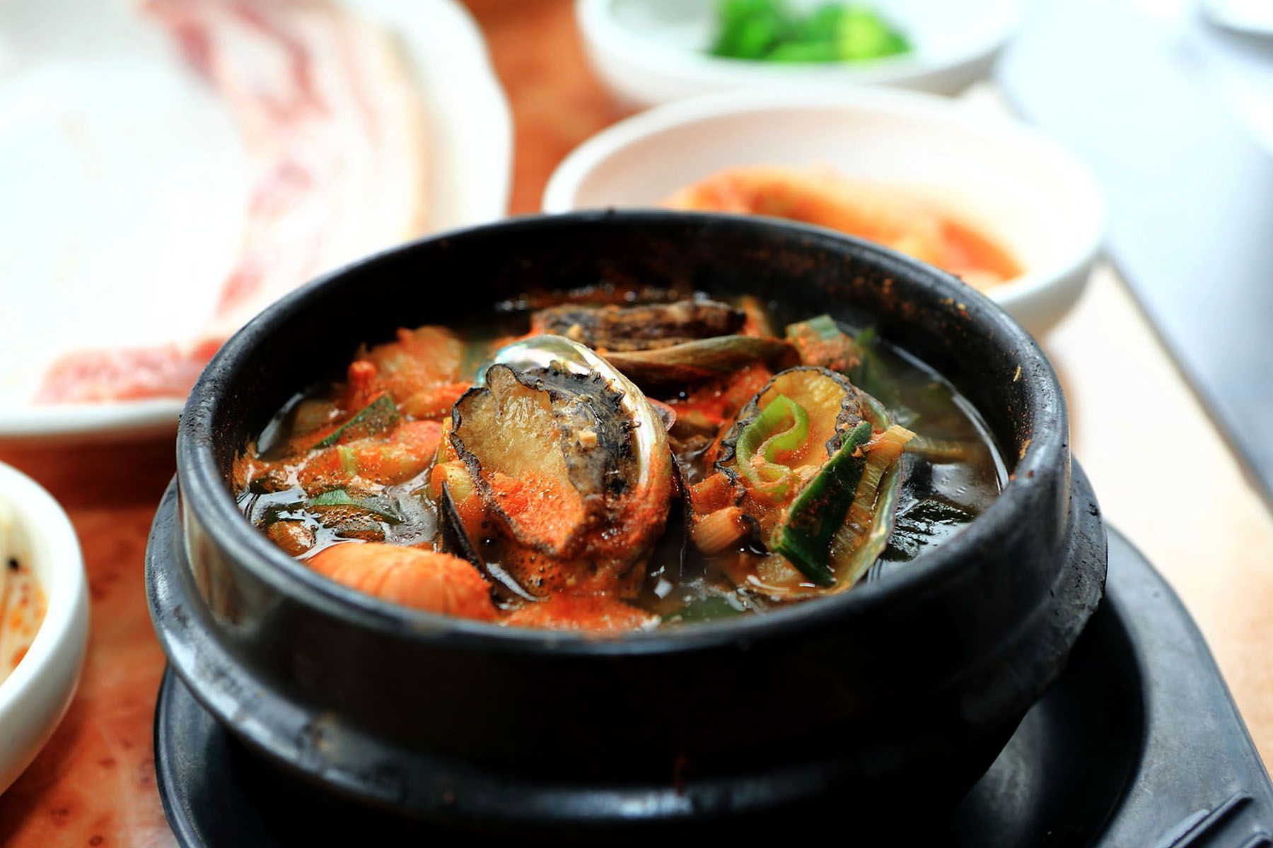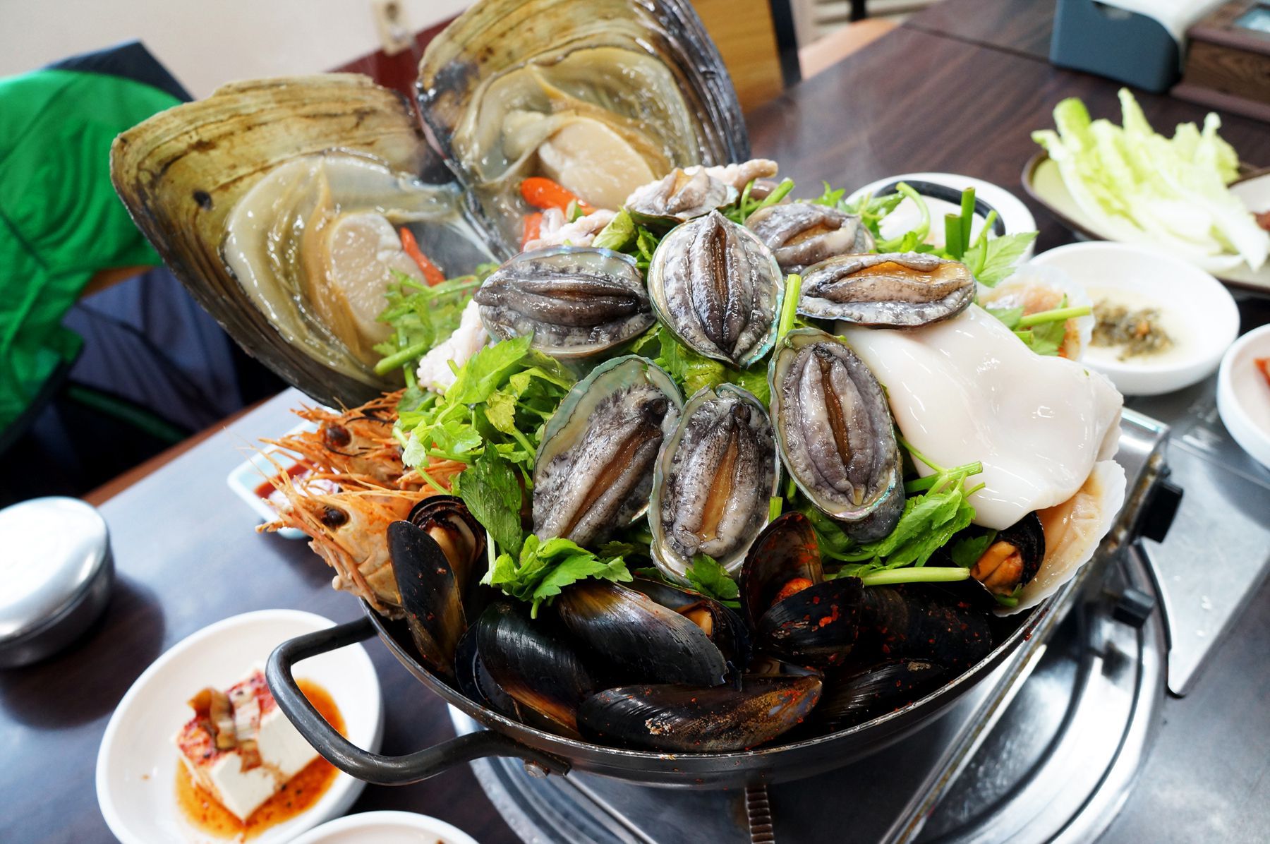 해물탕에는 키조개, 전복, 딱새우, 석화굴, 조개, 홍합 등 제주의 싱싱한 해물들이 푸짐하게 나옵니다.