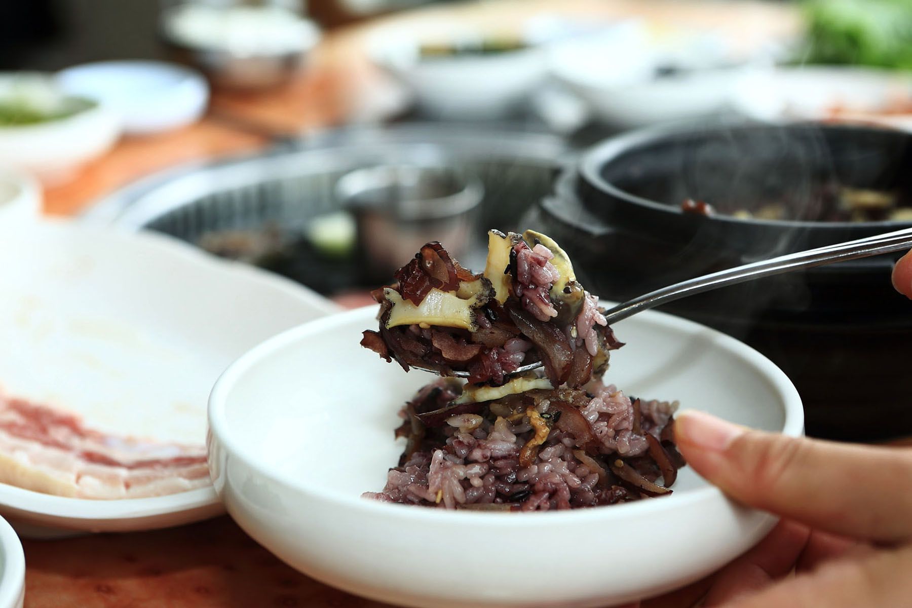 고소한 흑돼지고기와 전복의 싱싱함이 그대로 밴 양념에 볶은 밥이라 정말 맛있습니다! ^^