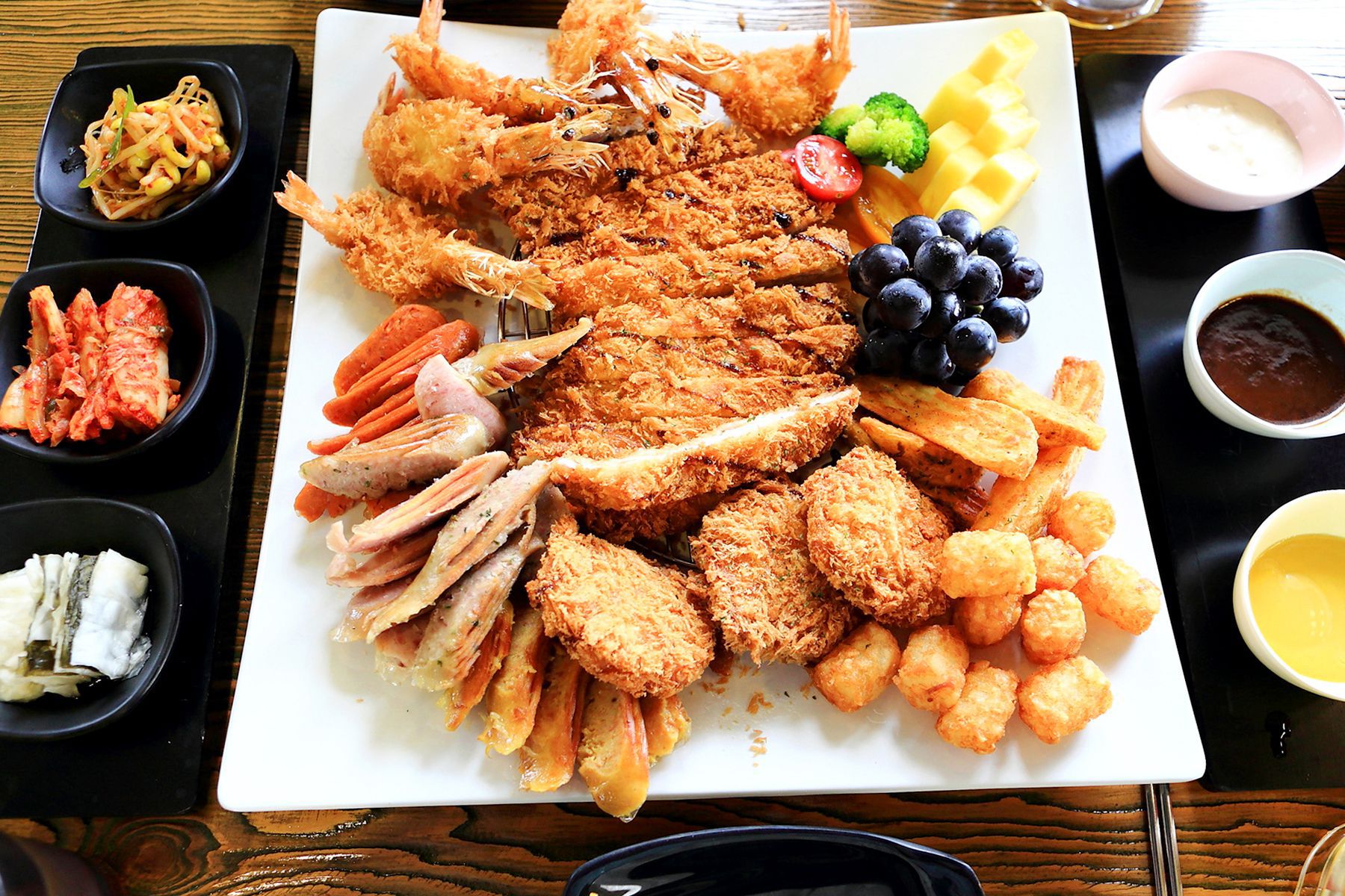 바삭바삭 고소한 맛이 일품인 튀김요리는 다양한 소스에 찍어 먹을수 있도록 준비되며