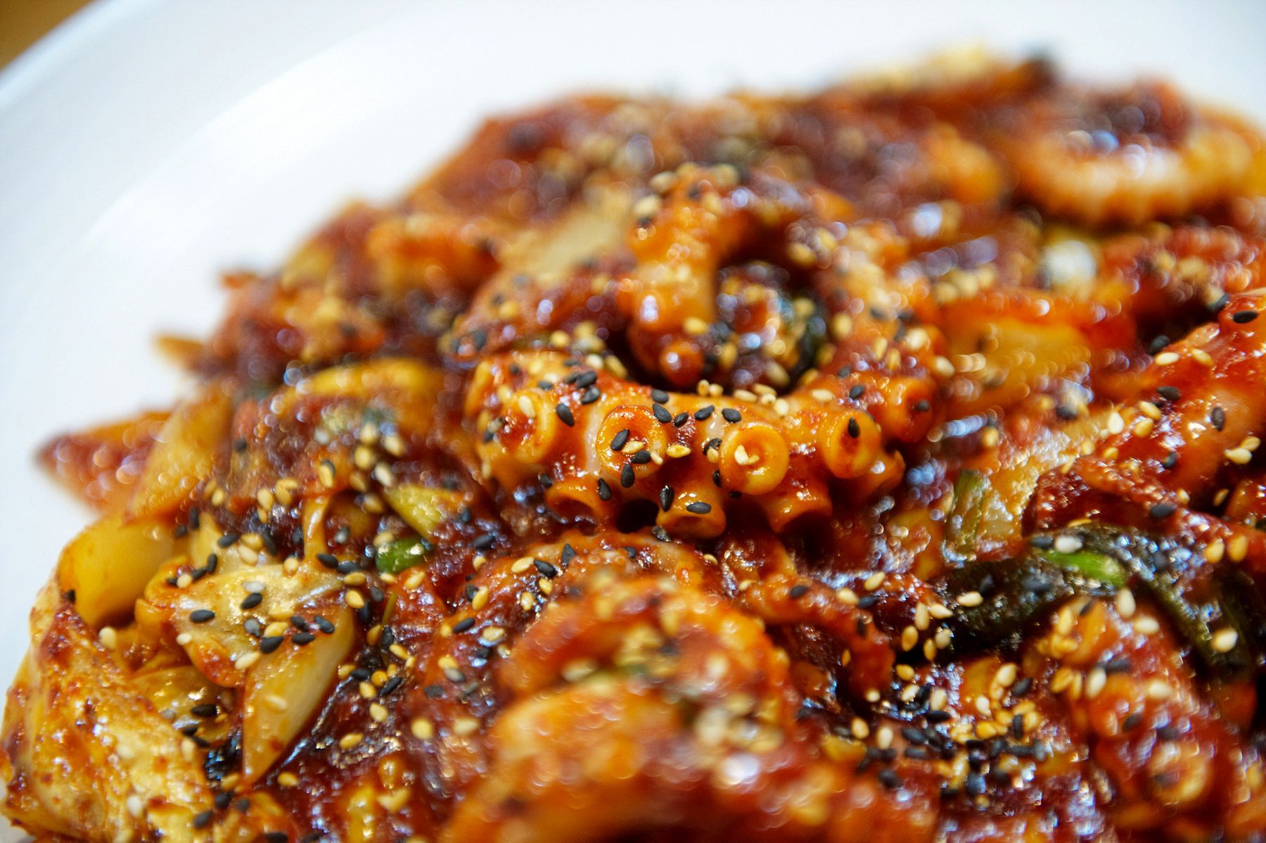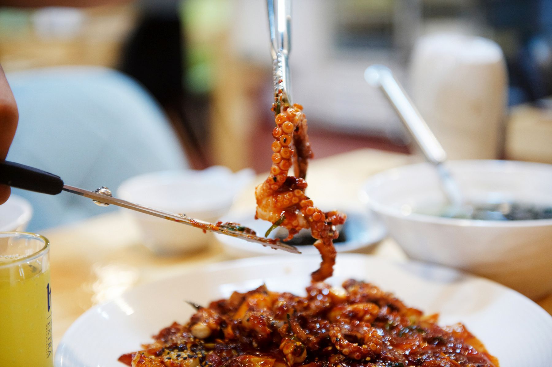 탱글탱글 신선한 낙지와 입에 착착 달라붙는 최소의 양념으로 비쥬얼부터 식감까지