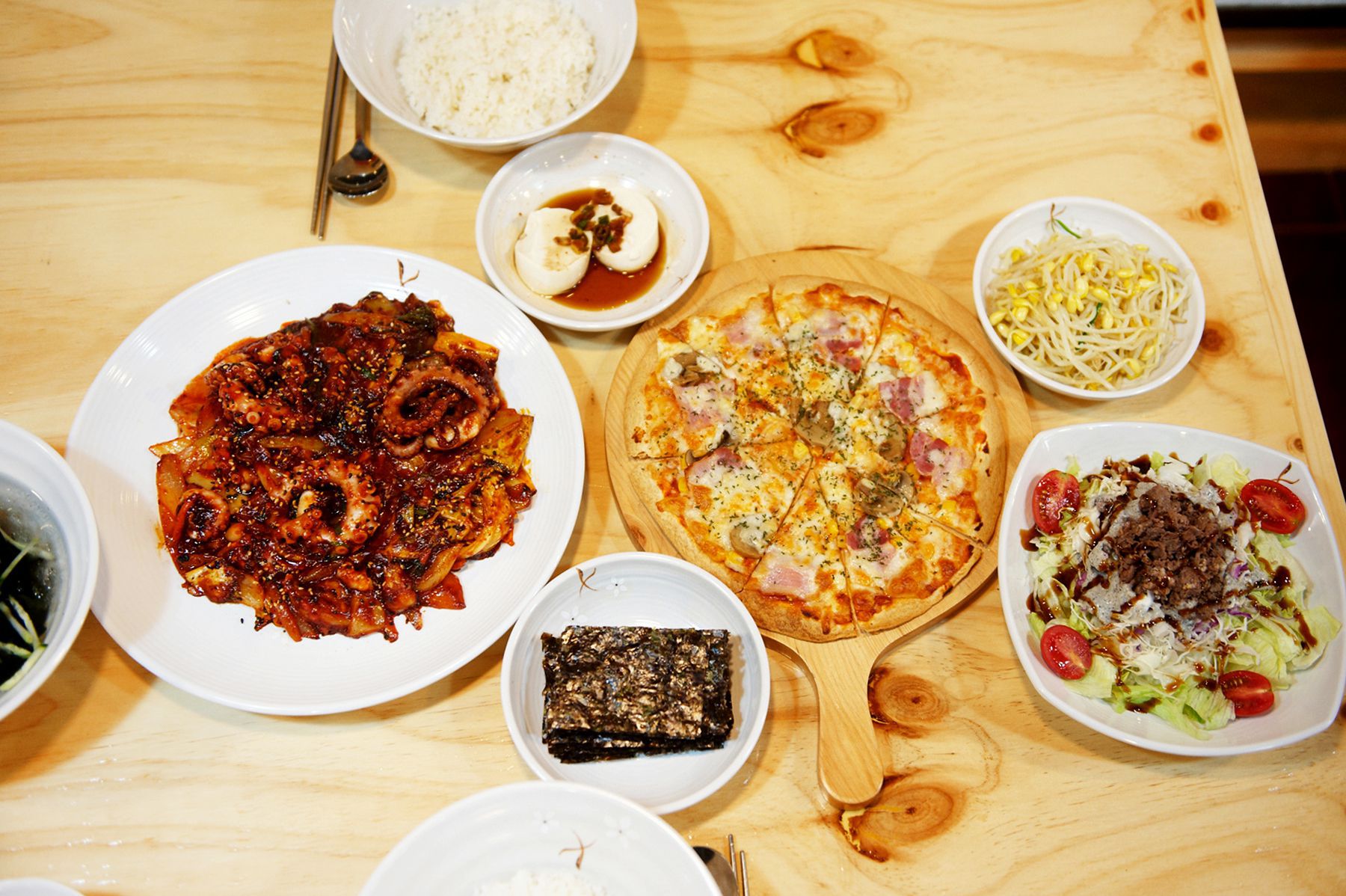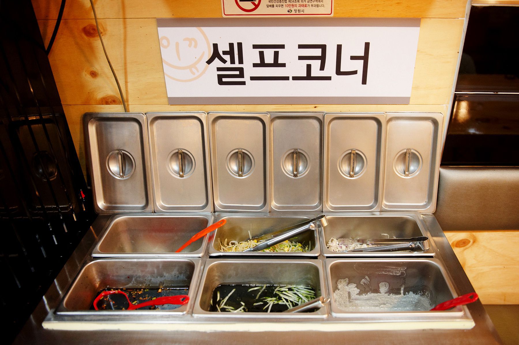 한쪽에는 셀프바가 마련되어있어 낙지볶음에 필수적인 서브음식들을