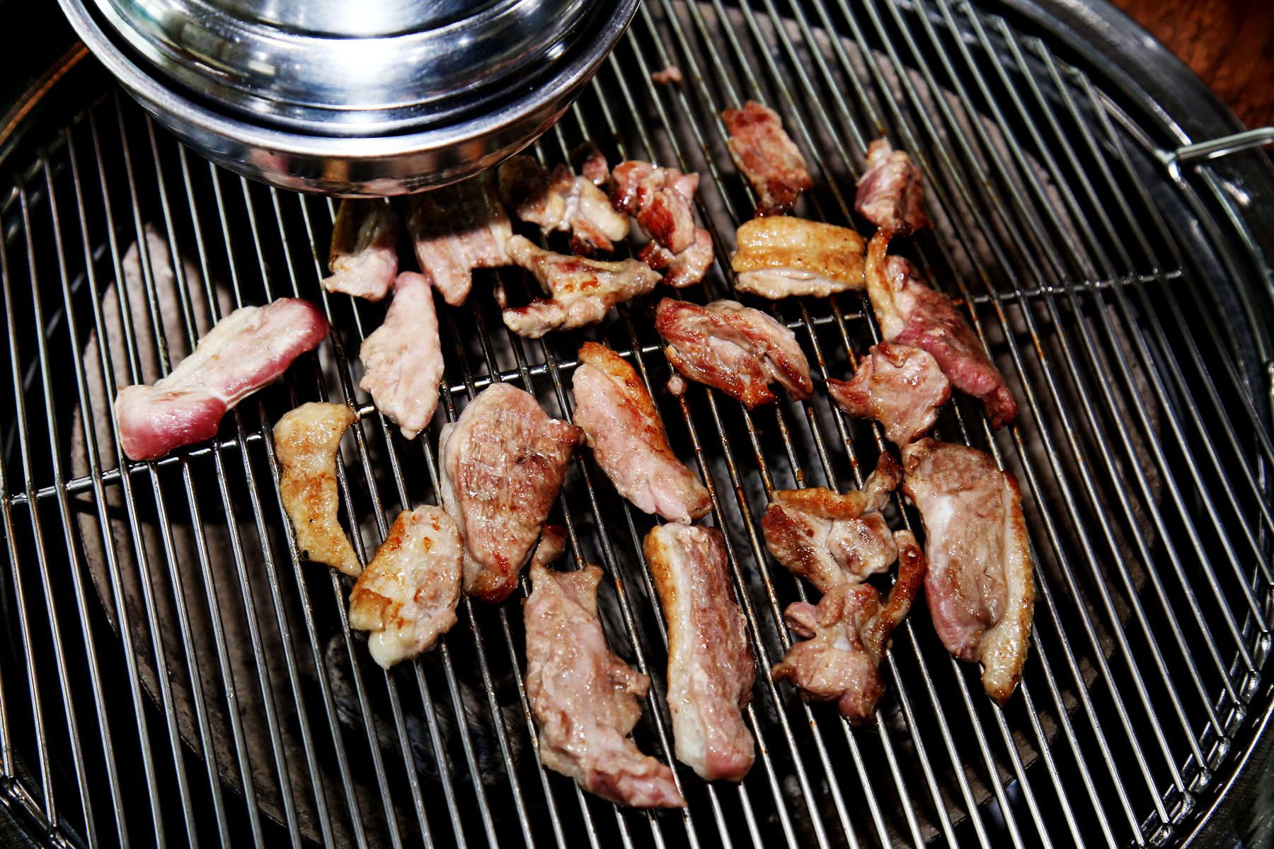 참숯 위에 지글지글 맛있게 구워지는 흑마늘 오리구이는 기름기는 쏙~빼고 쫀득한 식감은 그대로 살려