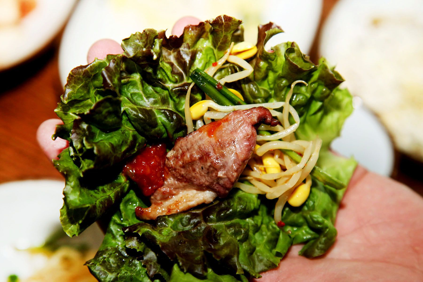 신선한 채소에 함께 제공되는 콩나물과 다양한 재료들을 얹어 쌈을 싸 먹어도 맛이 좋고