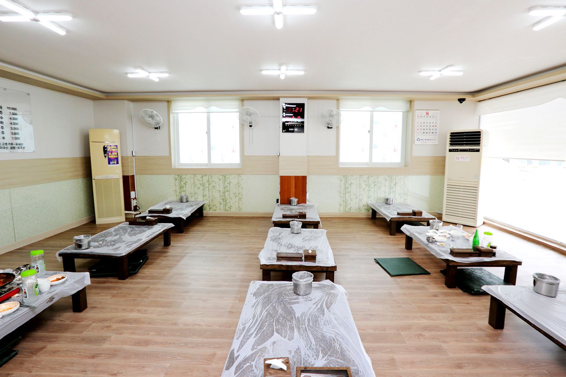 80명 정도가 수용가능한 실내테이블마다 덮어 놓은 비닐커버가 위생적인 청결함을 느낄 수 있어 더욱 좋습니다.