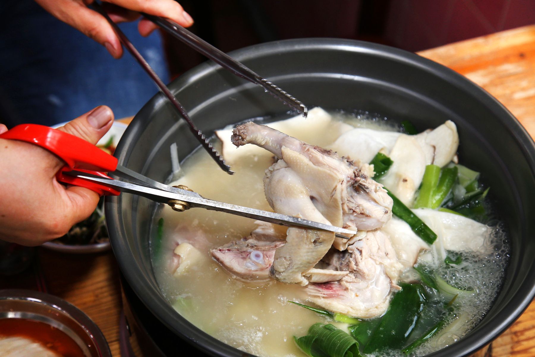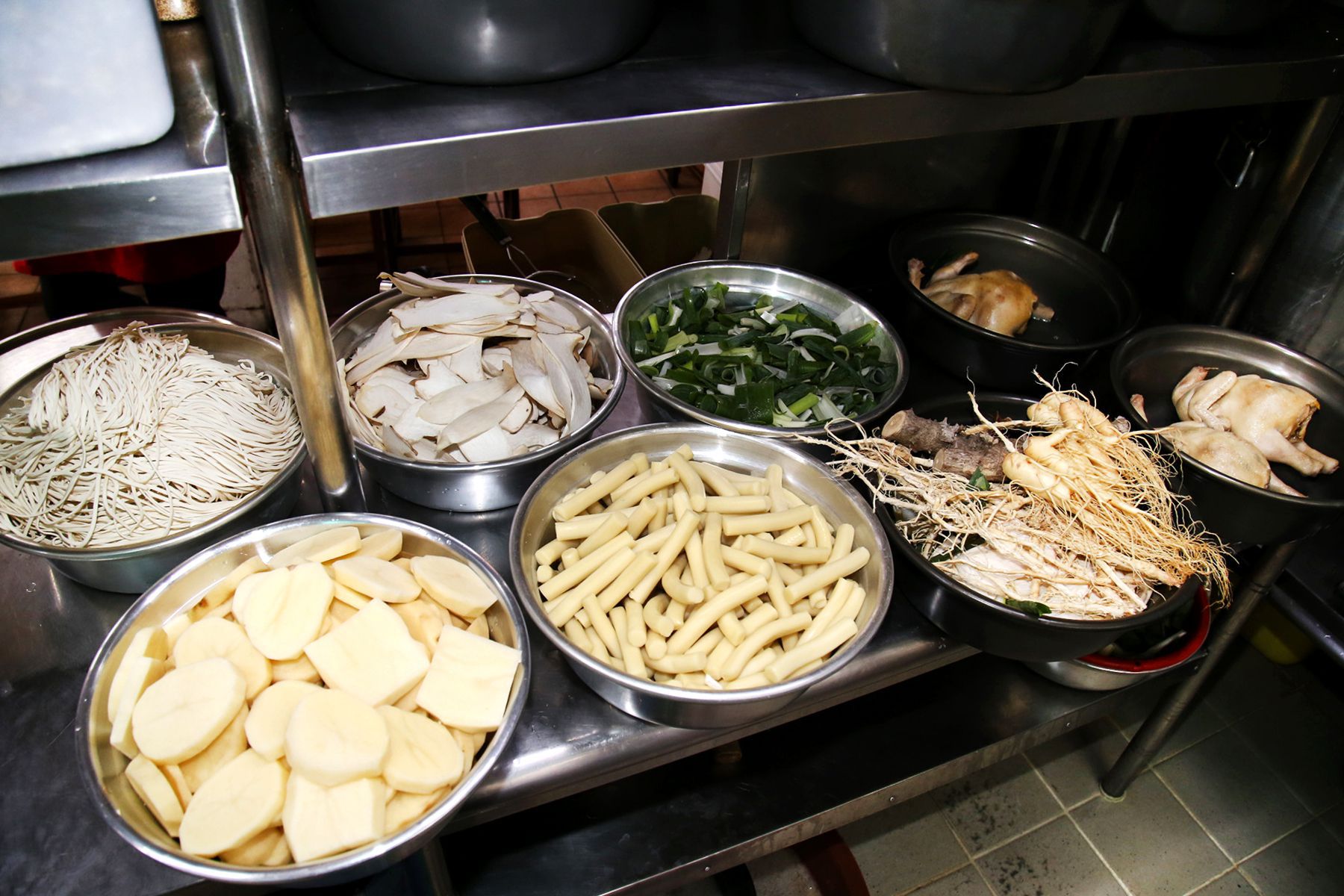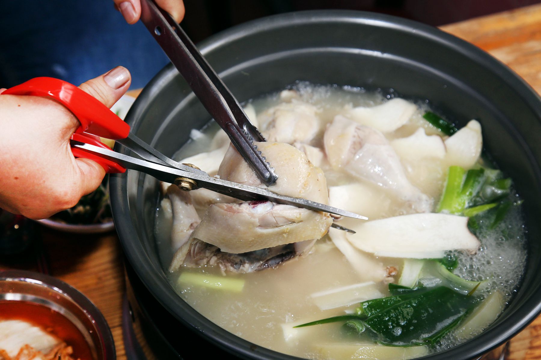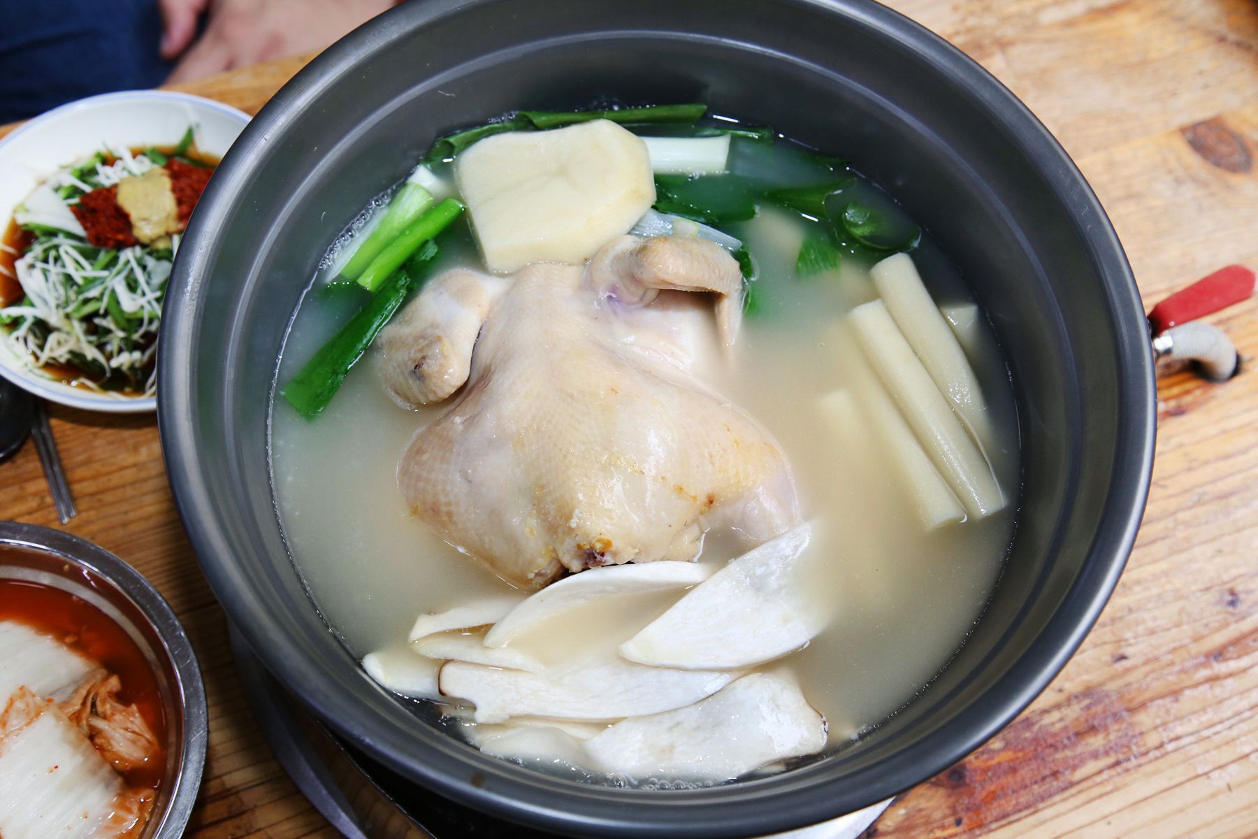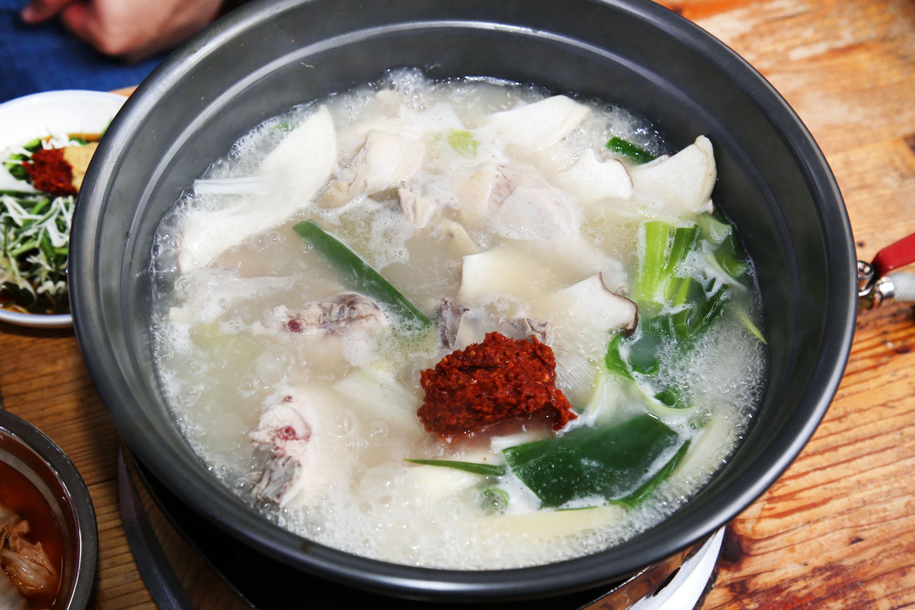 각종 한약재와 채소를 우려낸 육수에 통째로 들어있는 닭고기는 쫄깃하고 부드러워