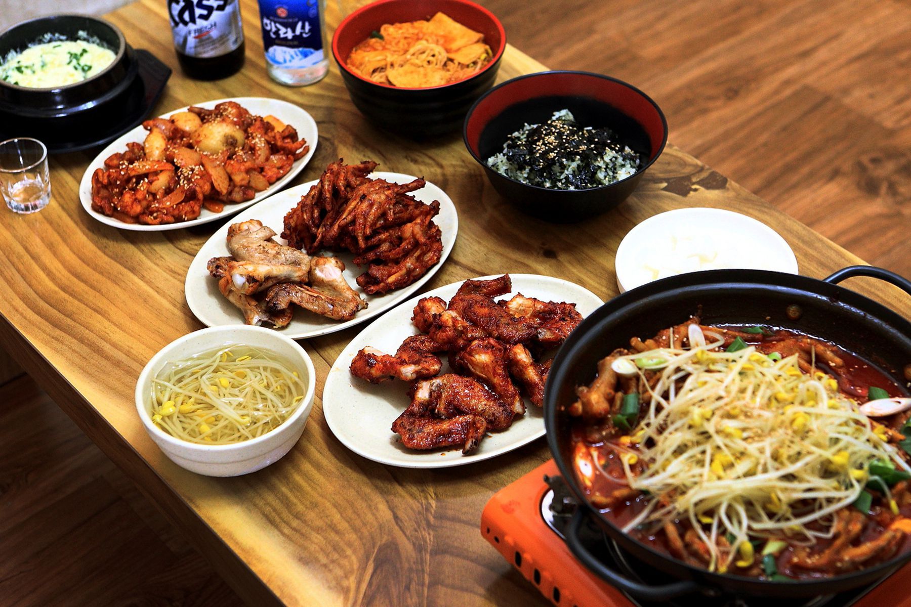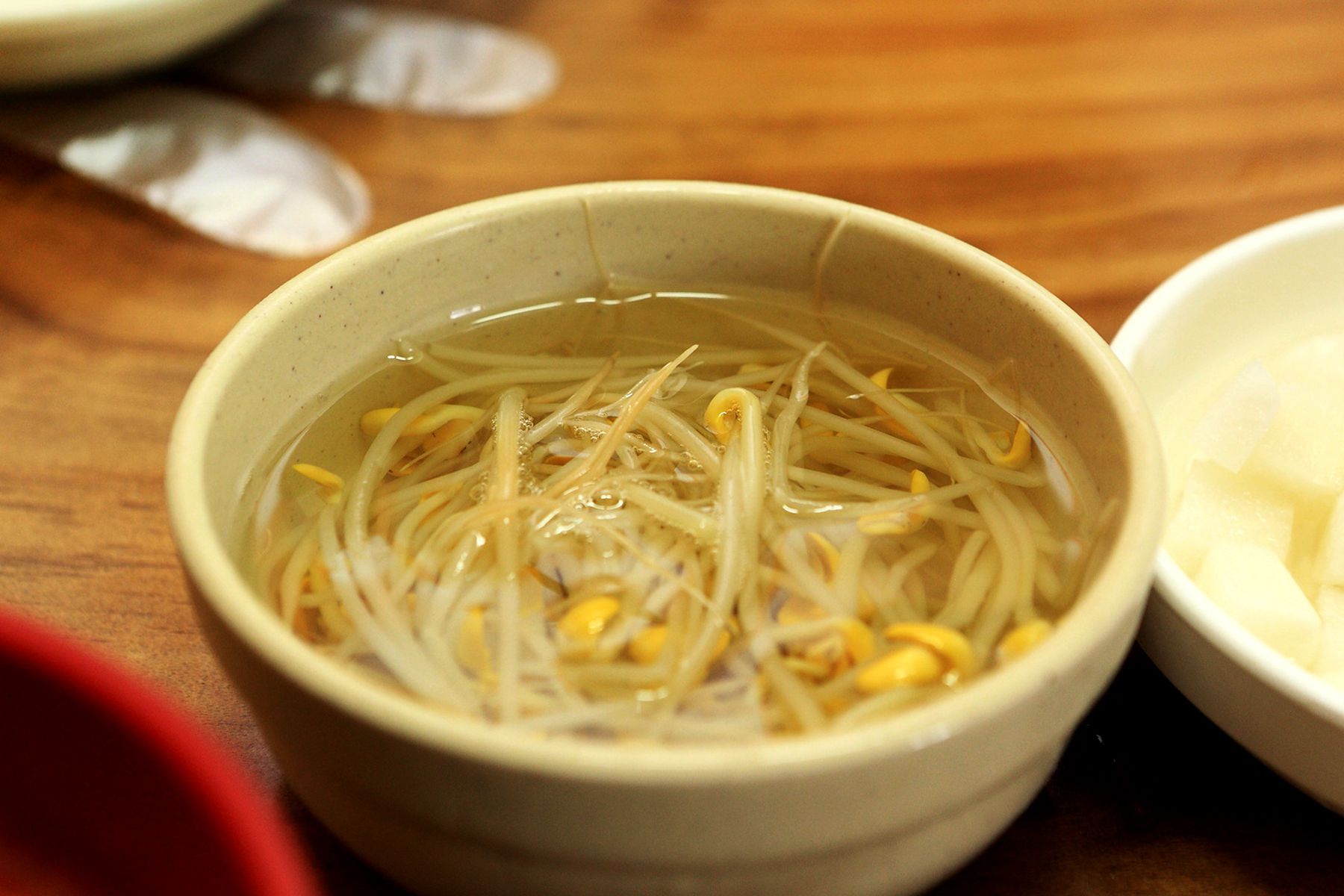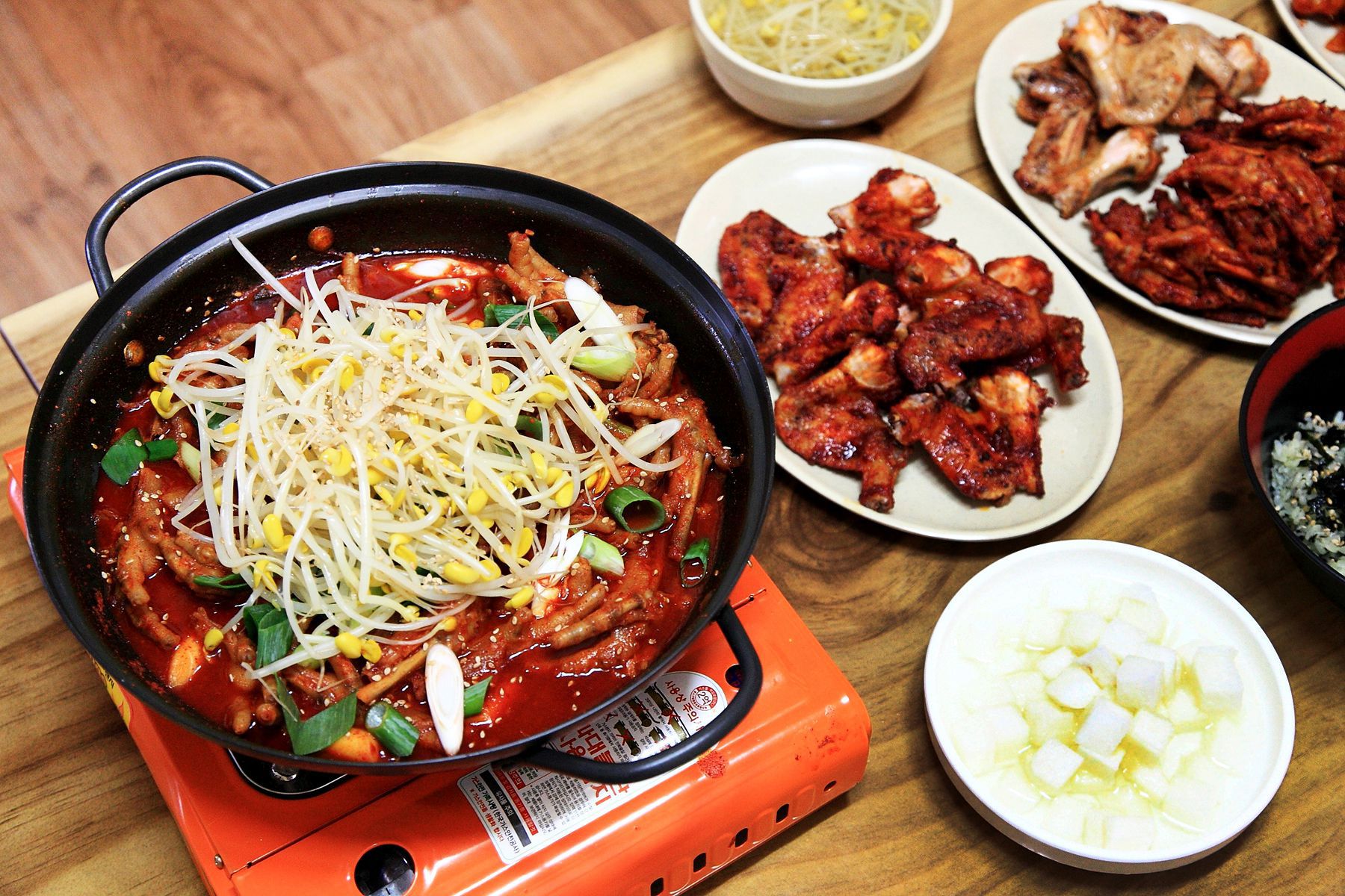 닭하면 빠질 수 없는 새콤달콤 무와 아삭한 콩나물국을 함께 즐기신다면 자칫 느끼할 수 있는 입맛을 상쾌하게 해주어서 함께 마음껏 즐기시길 권해드립니다.