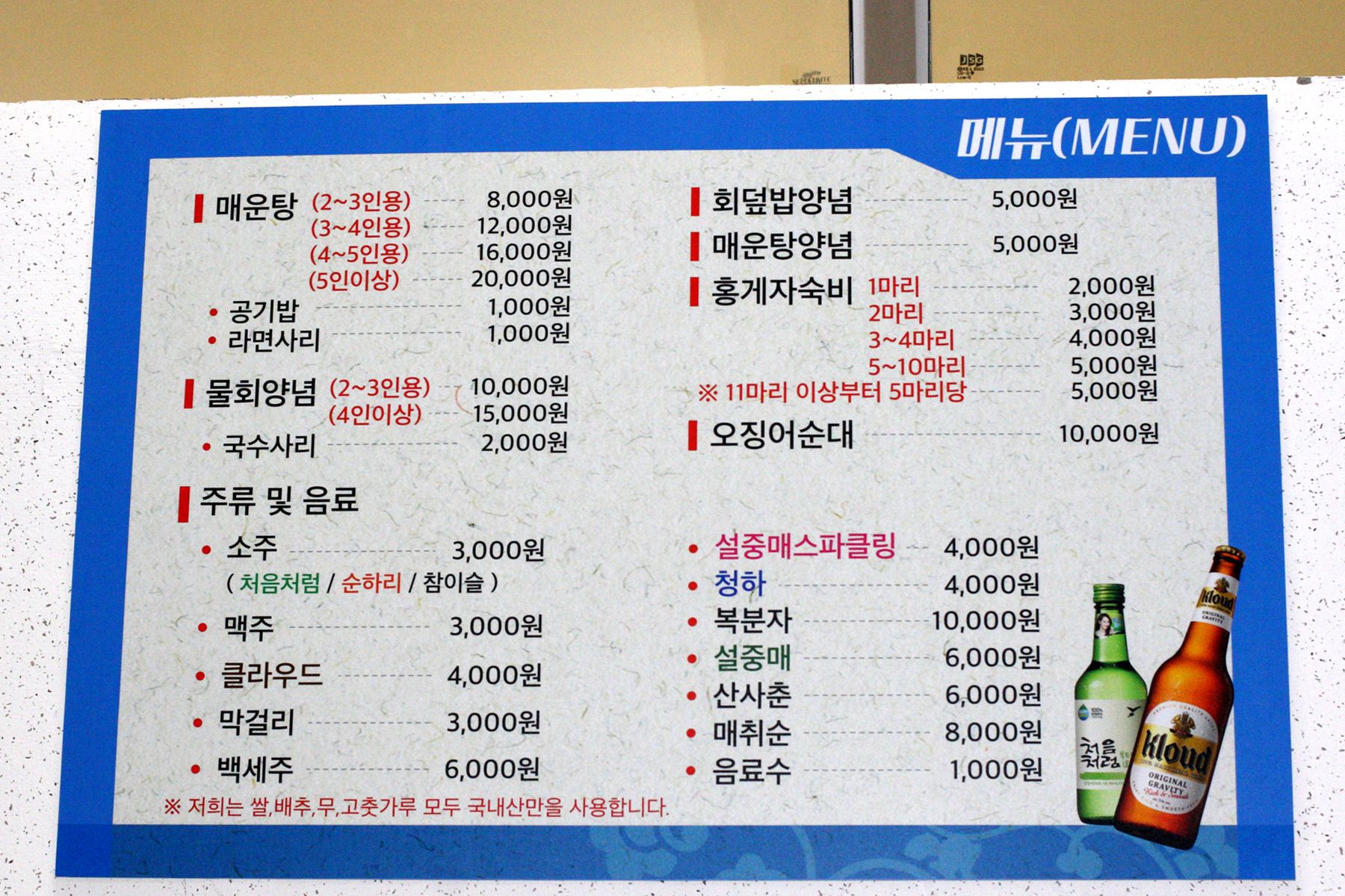 그리고 두툼한 생선살이 듬뿍 들어 있어 건져먹는 재미가 쏠쏠한 매운탕도 별미로 술한잔 하기 안성맞춤 입니다.