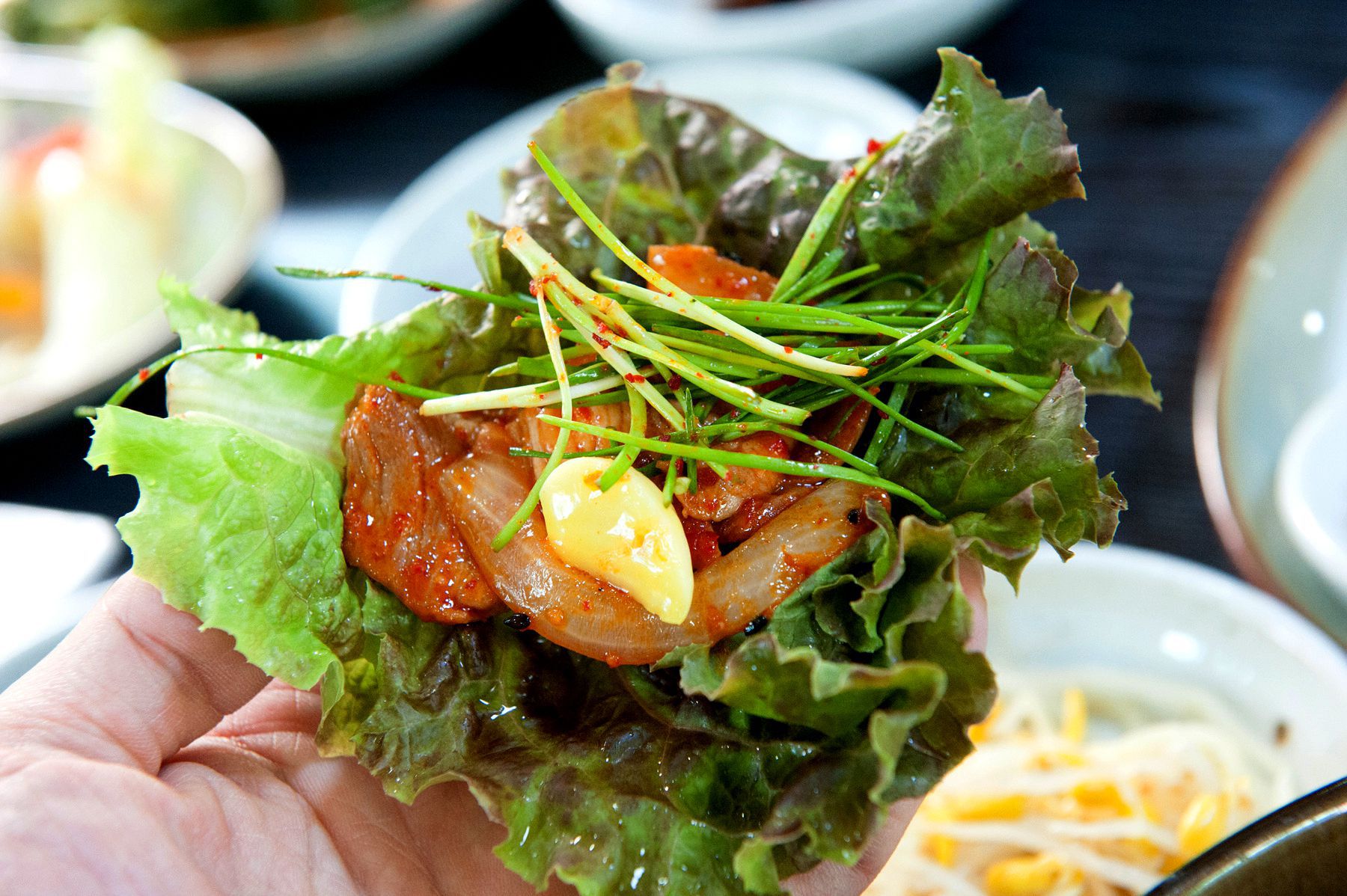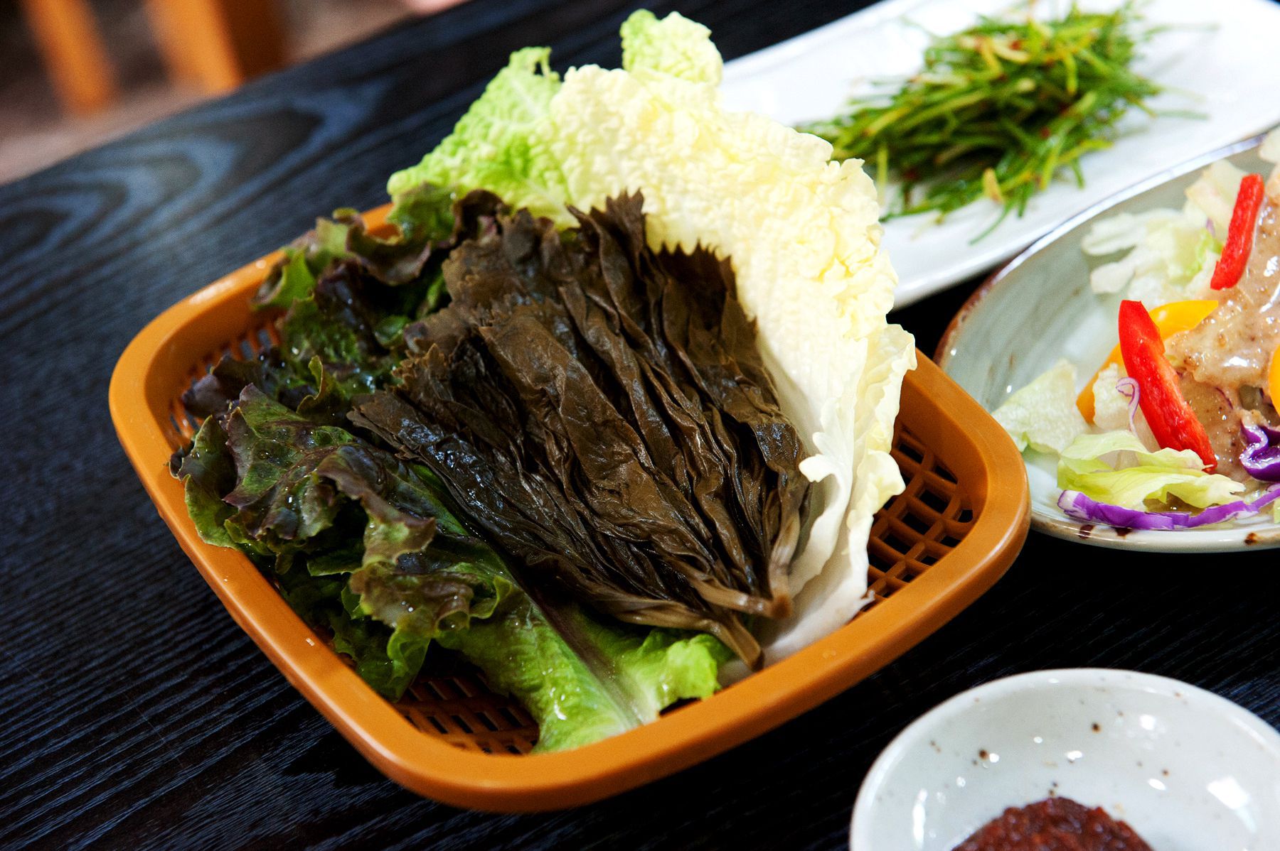 비벼진 밥을 곰취,상추,배추에 쌈을 싸서 먹으면 또 다른 별미를 느낄 수 있습니다.^^