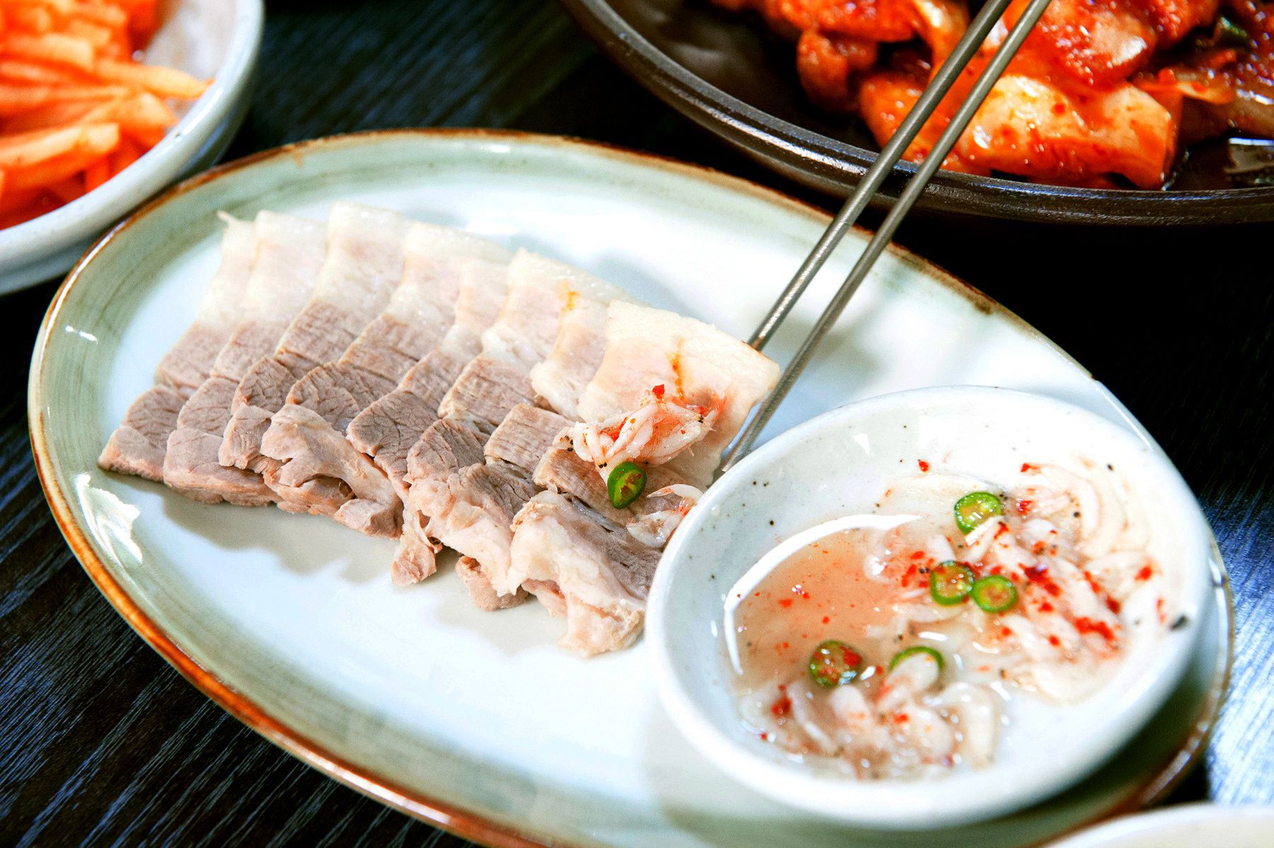 잡내없고 담백하고 부드러운 삼겹보쌈과 고소한 들깨소스가 매력적인 들깨소스오리불고기,