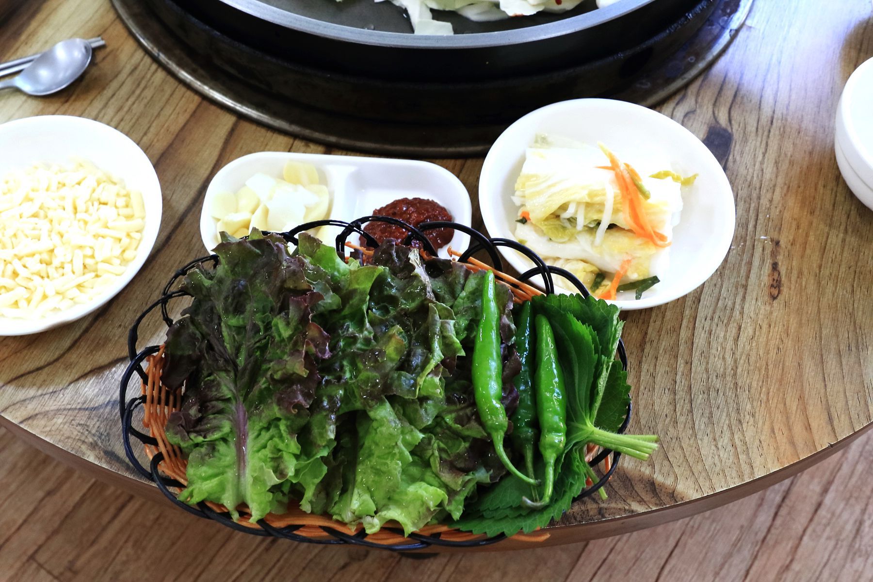 돌판에 올려져 신선한 야채와 국내산 닭으로