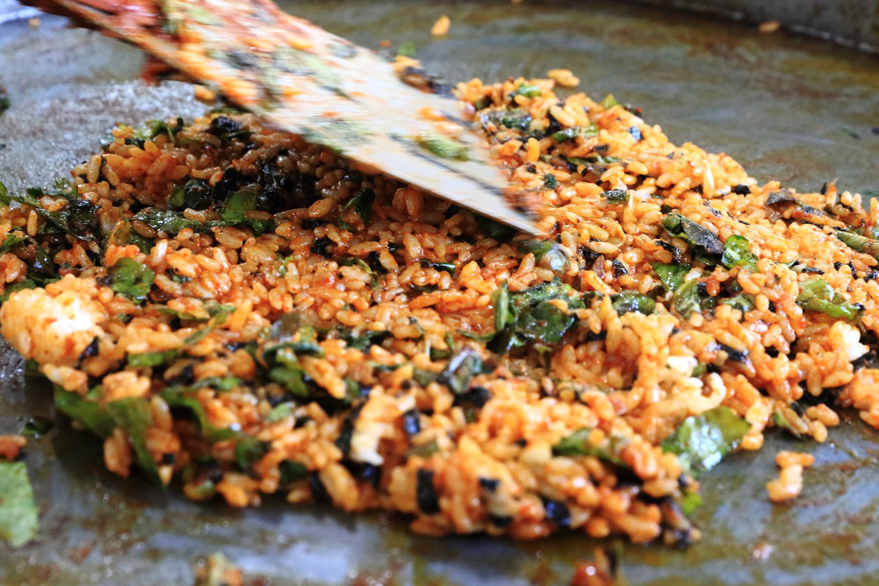 갖은 야채와 함께 꼬돌꼬돌한 밥을 함께 넣어서 맛있게 볶아주시면