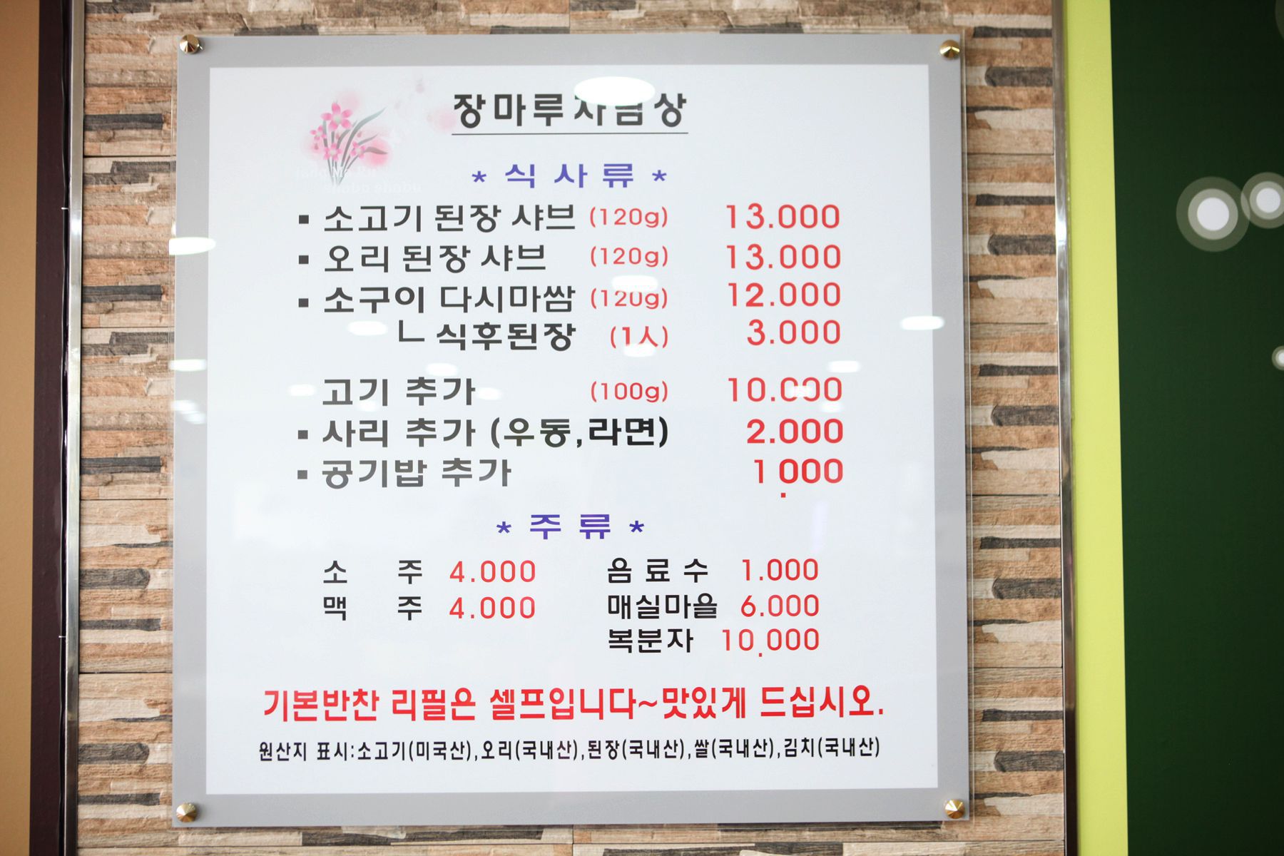장(된장) 과 마루(최고)라는 뜻을 가진 이곳 식당의 대표메뉴는