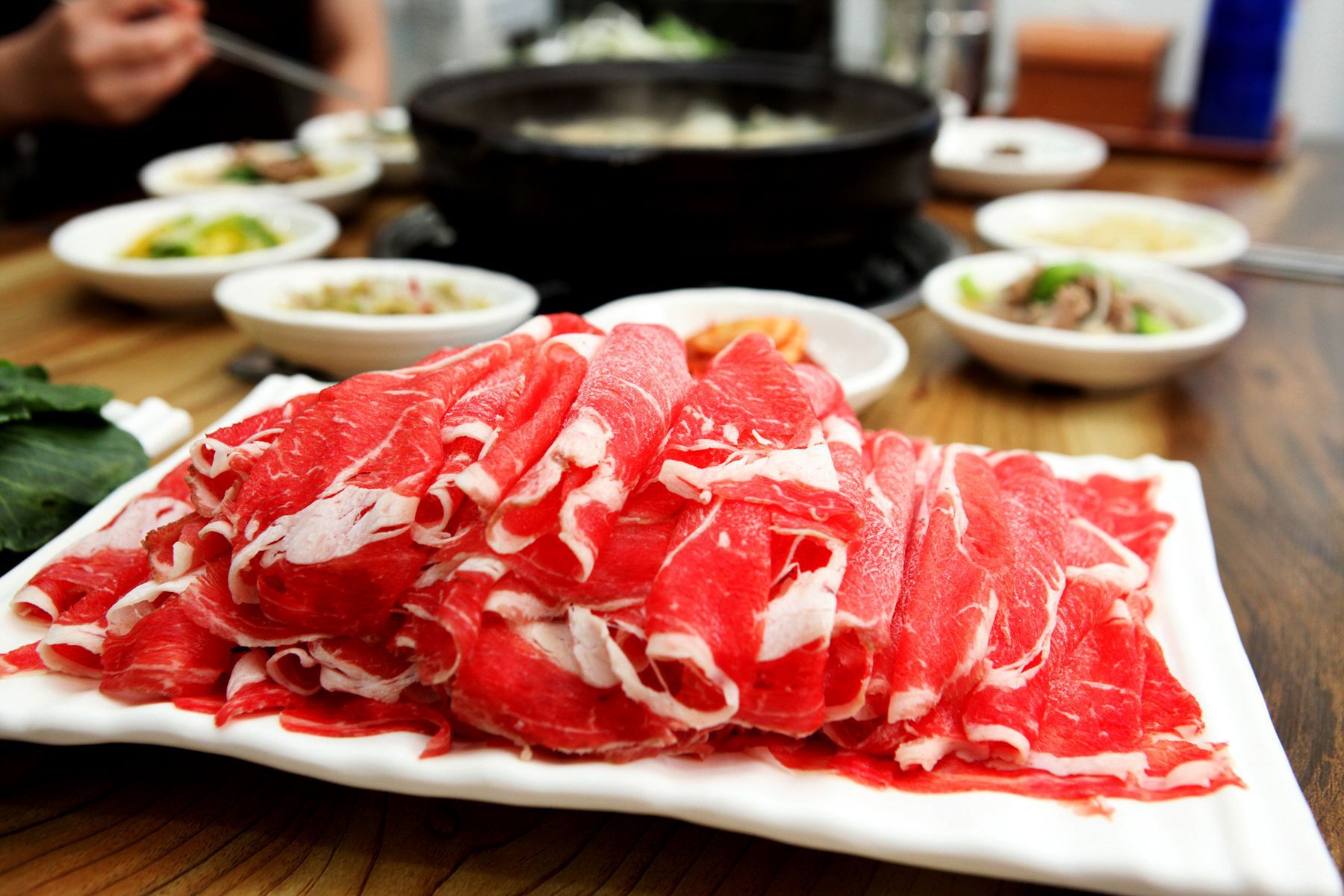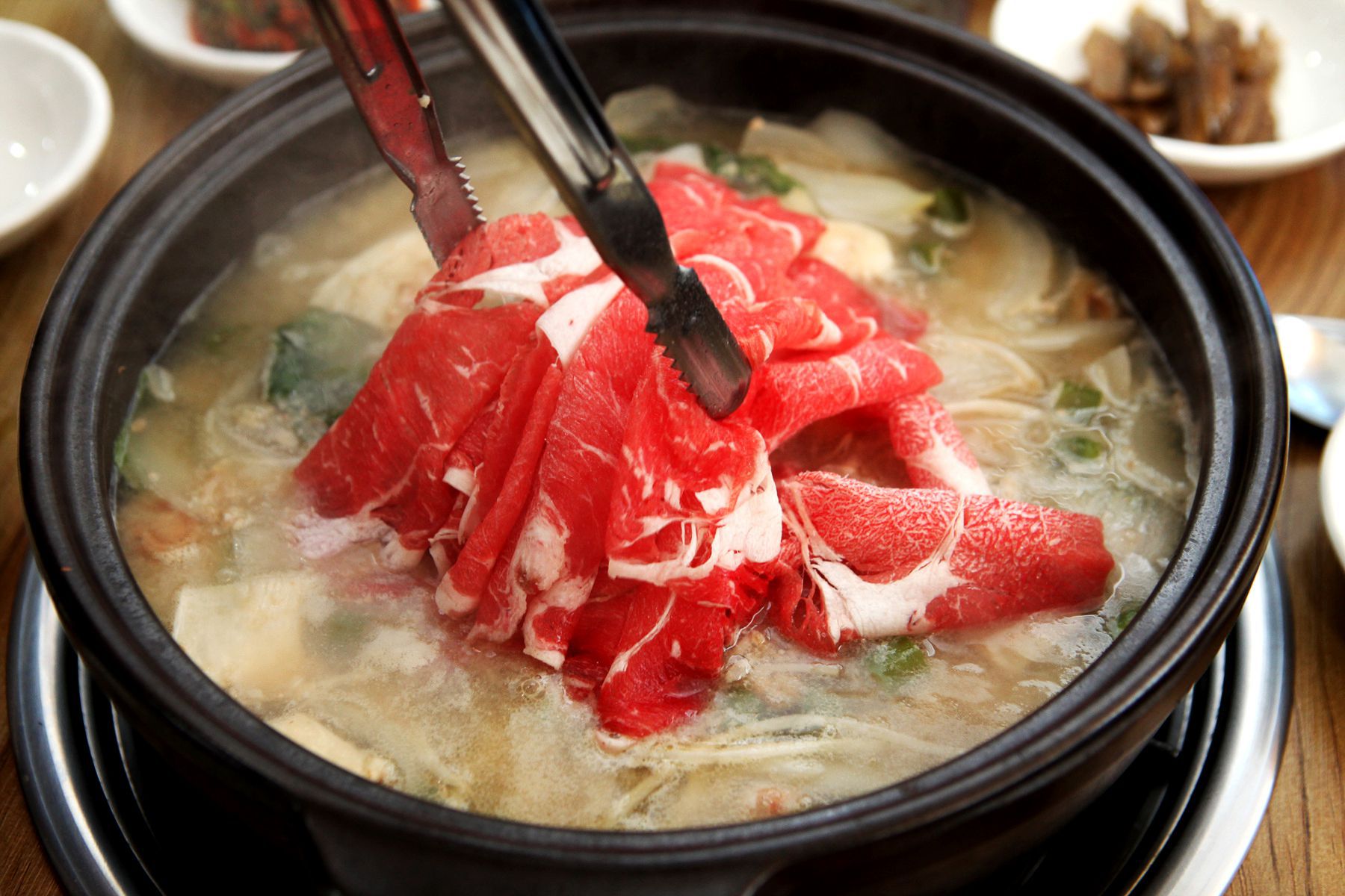 새빨간 질 좋은 소고기와 신선한 야채가 구수하고 시원한 된장육수와 만남인 '소고기된쟝샤브'