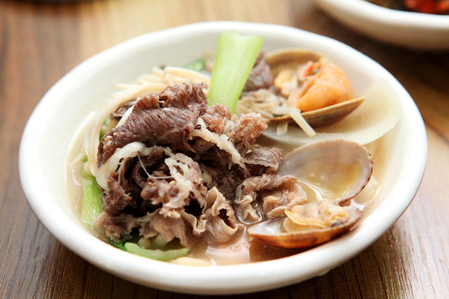 구수한 된장육수에 조개도 들어가 있어 시원한맛까지 느낄 수 있으며