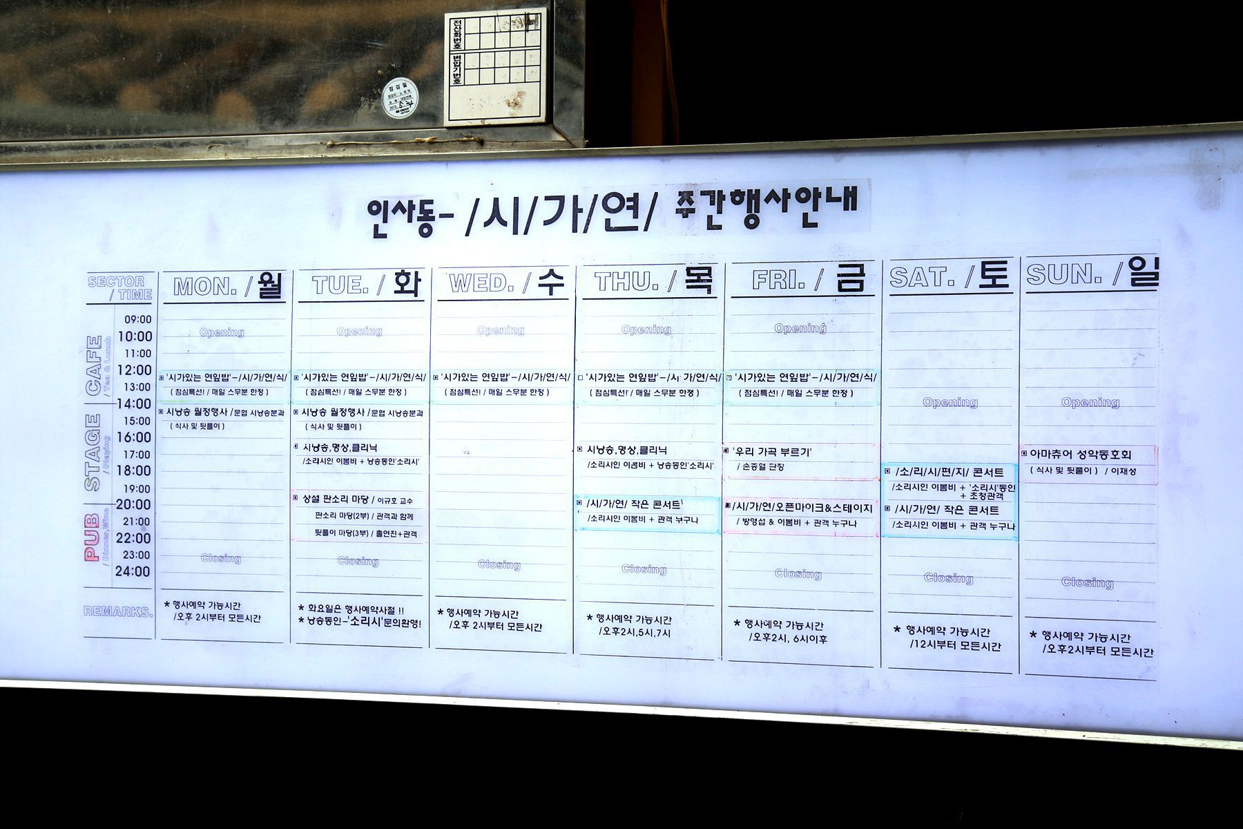 시와 노래와 공연이라는 뜻을 가진 시가연은 인사동의 유일한 갤러리 콘서트 카페로