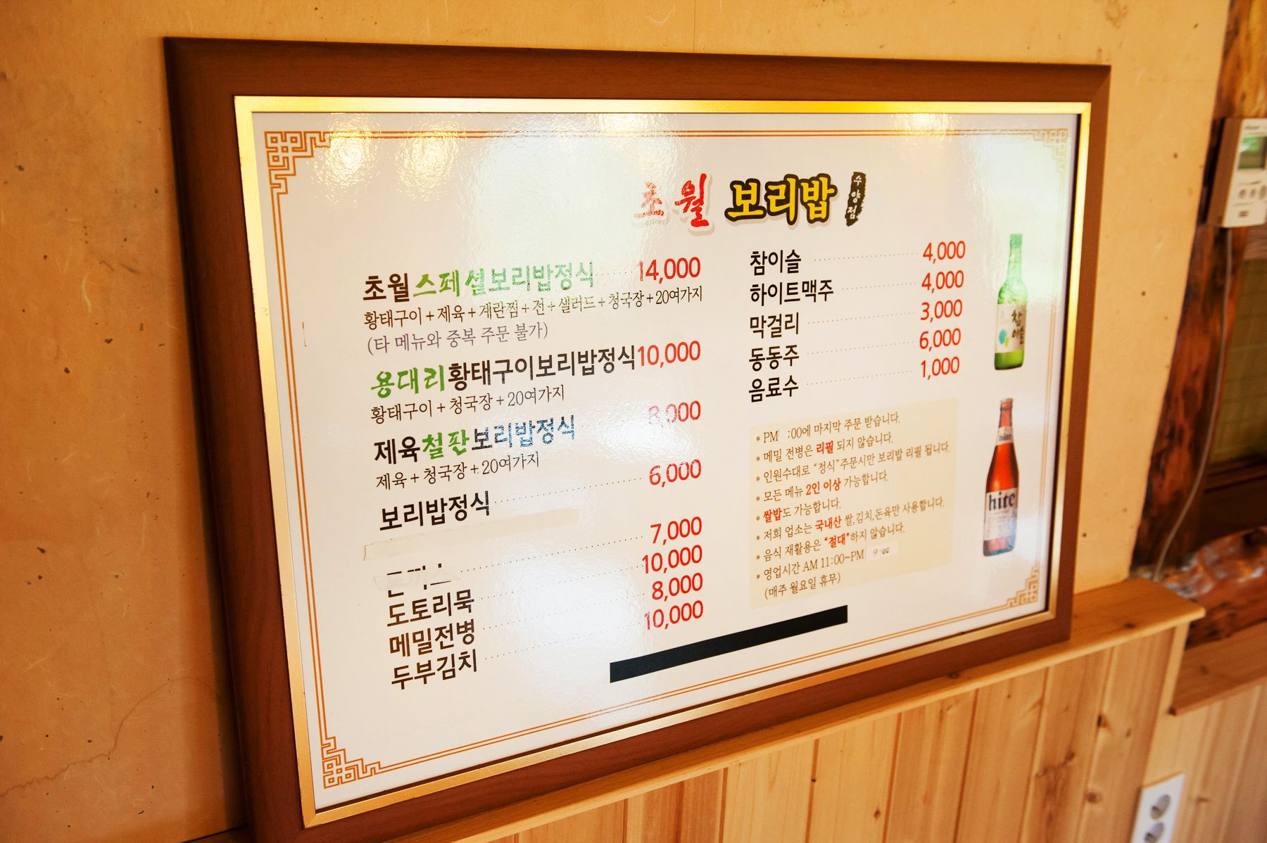 스페셜정식, 황태구이정식, 철판제육정식, 보리밥정식이 마련되어 있습니다.