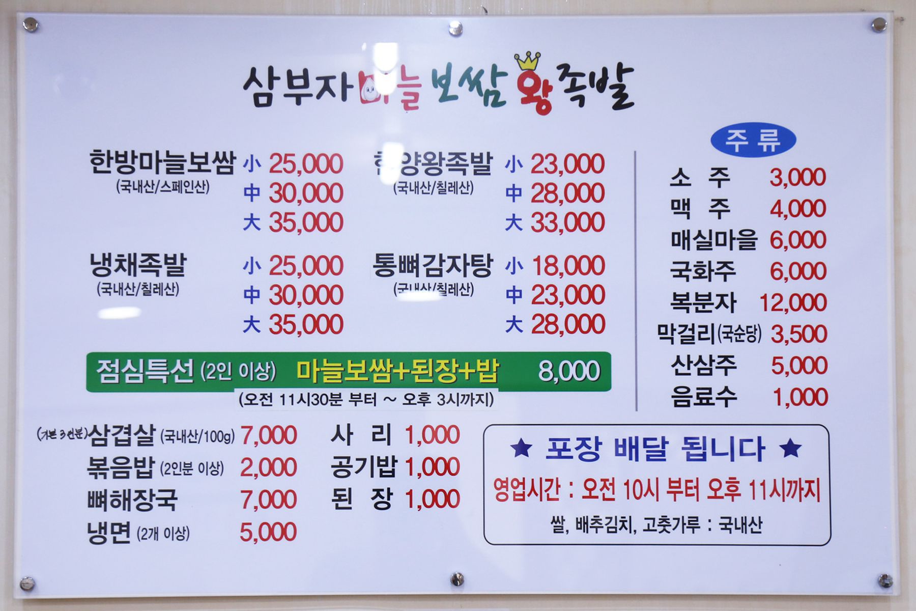 맛은 물론이고 건강까지 생각한 메뉴로 사랑받고 있는 삼부자마늘보쌈왕족발을 소개해 드립니다.
