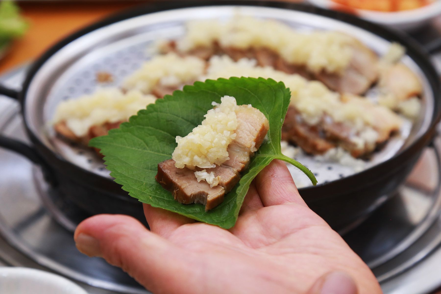 마지막까지 처음 그대로의 맛으로 맛있게 즐길 수 있도록 차려져 깊은 맛이 느껴지는 마늘보쌈은
