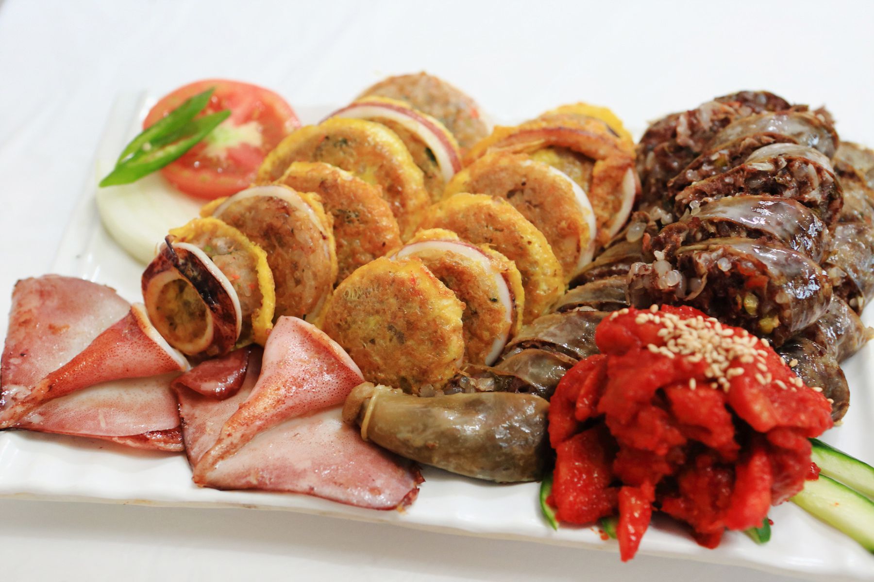 이곳식당의 주 메뉴로는 아바이순대,오징어순대,모듬순대가 있으며