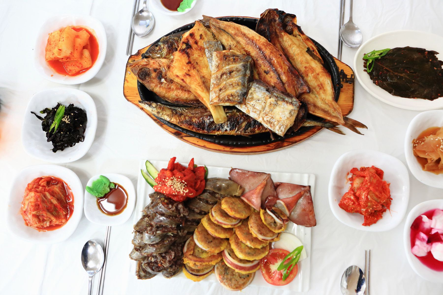 아바이마을에 오시면 꼭 먹어봐야하는 음식들로 푸짐하게 차려진 한상!