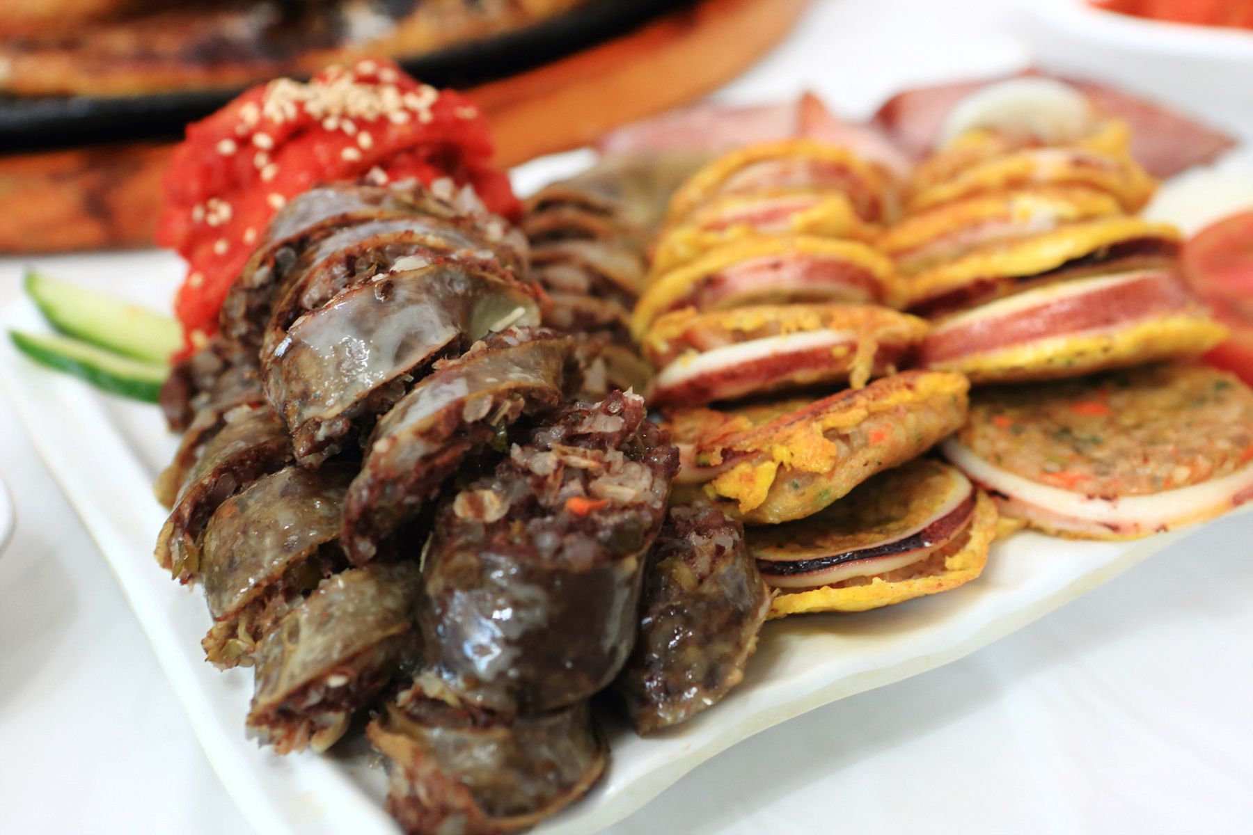 자칫 밋밋할 수도 있는 순대에 함경도 음식인 가자미식해가 함께 나와 순대의 밋밋함을 잡아주기때문에 더욱 맛있게 드실 수 있습니다.^^
