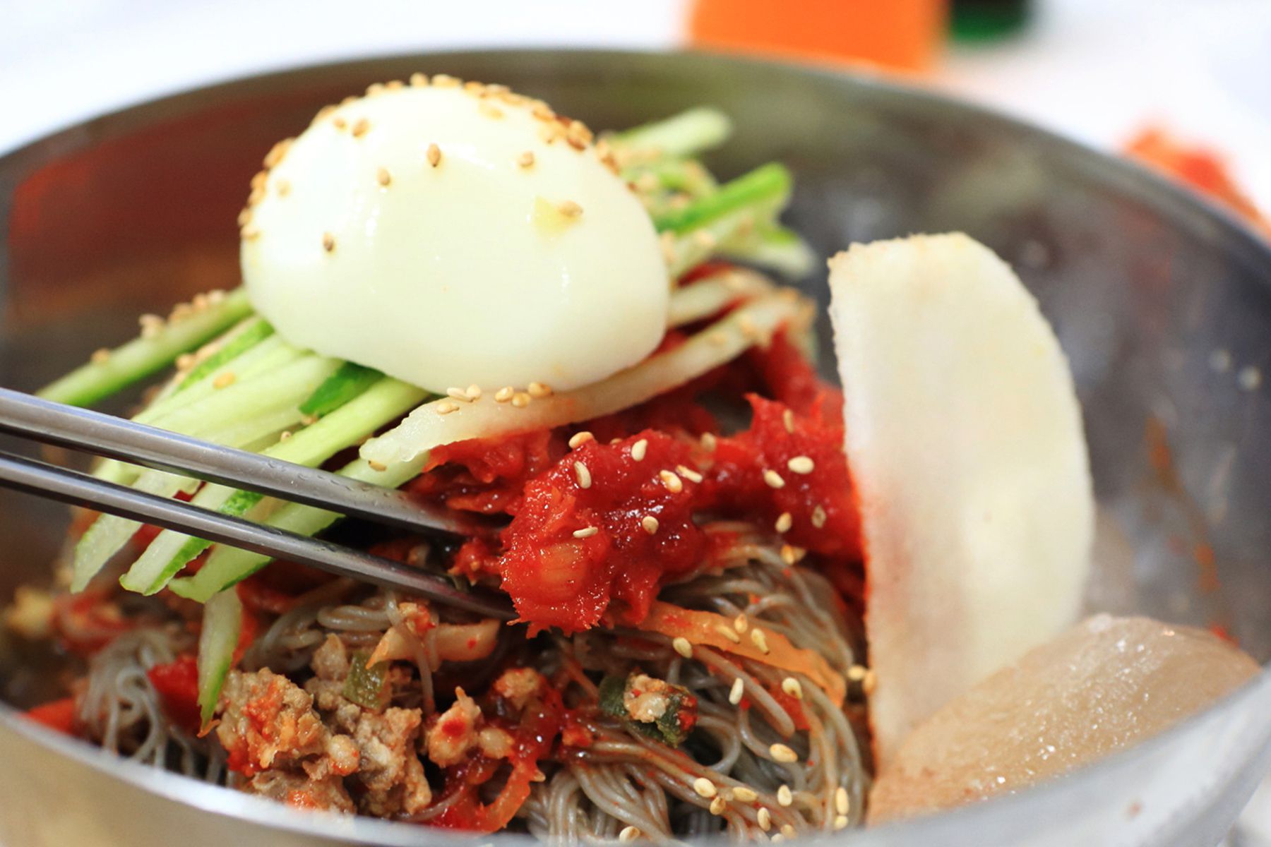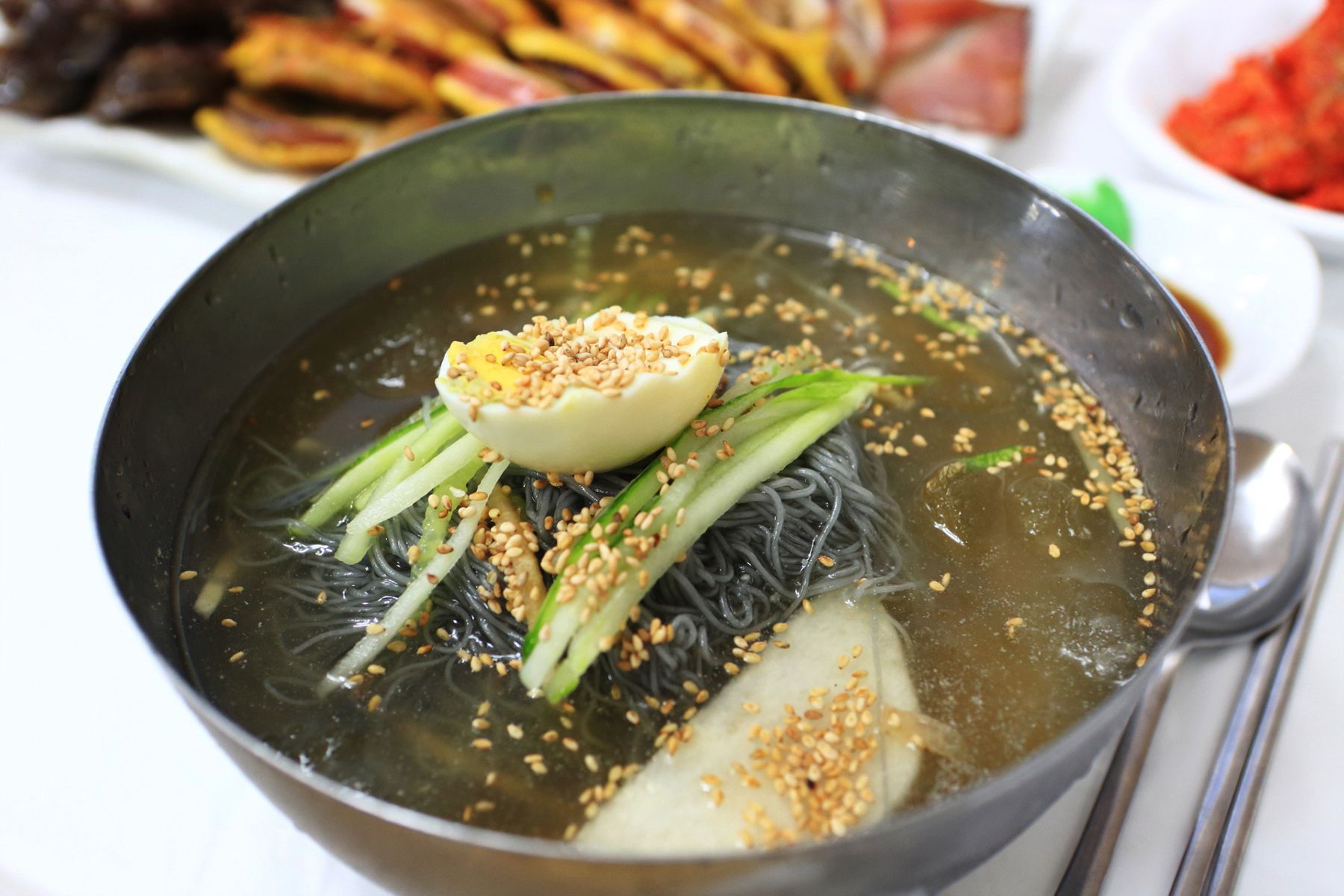 직접 뽑은 면을 사용해 더욱 쫄깃한 면을 자랑하는 시원하고 새콤한 물냉면과 비빔냉면도 준비되어 있으니