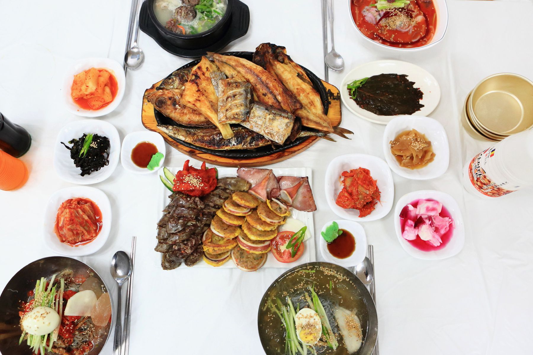 직쩝 뽑은 냉면과 시원한 가자미식해,명태식해들이 준비되어 있습니다.