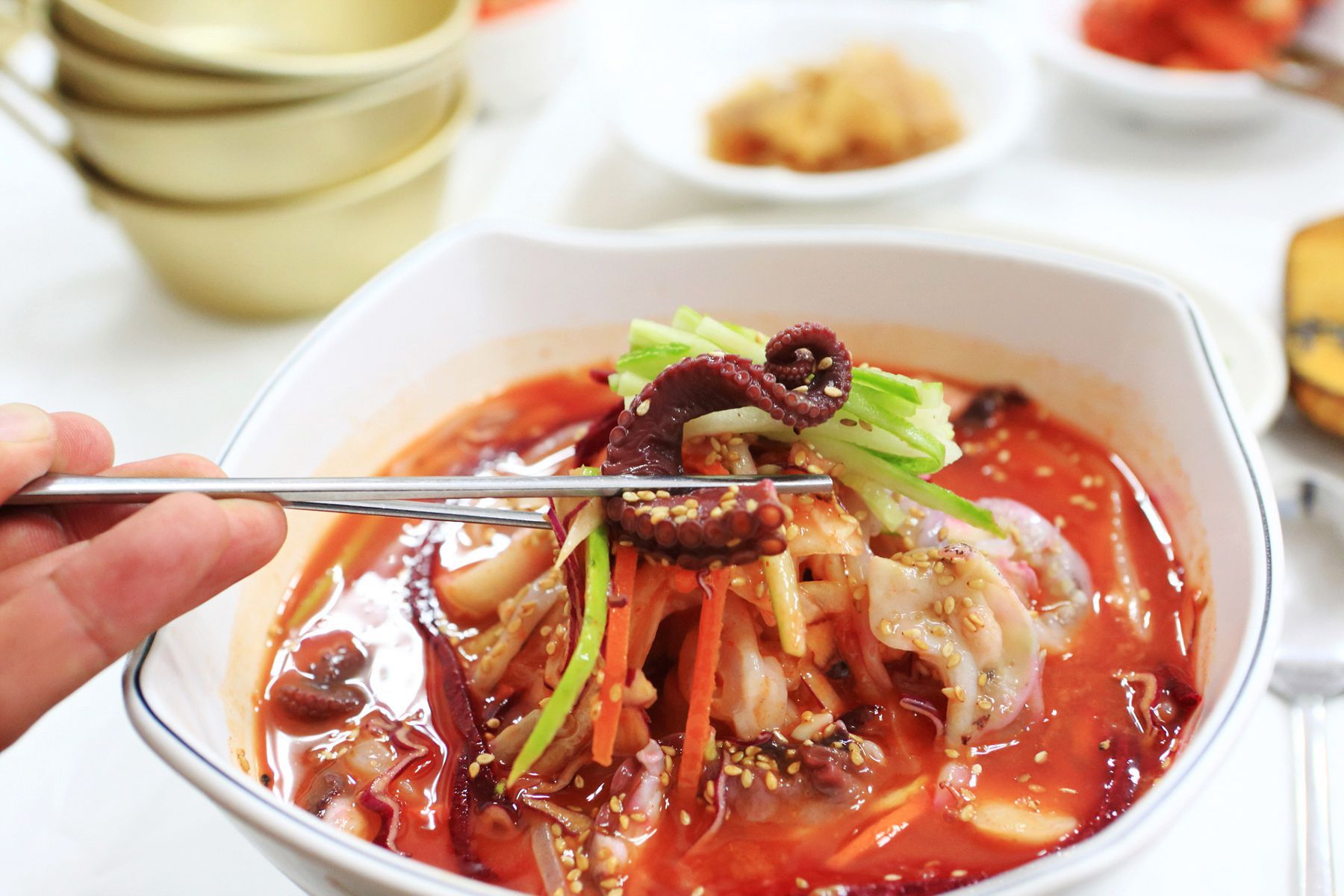 비쥬얼부터 군침을 자극하고 입에 넣은순간 행복한 미소가 절로 지어지는 새콤달콤한 물회,