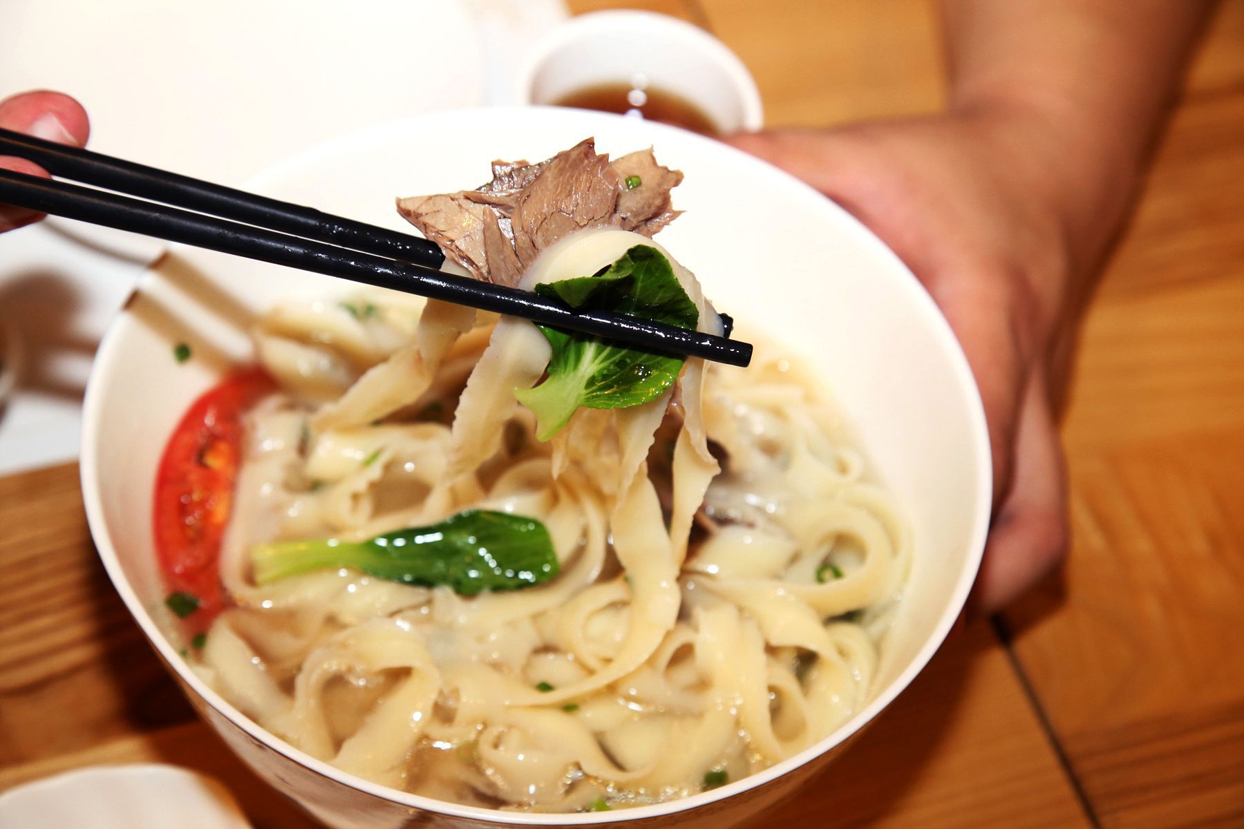 그리고 중국 전통 방식의 넓적한 칼날로 면반죽을 깍아서 만들어낸 면과 소고기 육수의 도삭면은