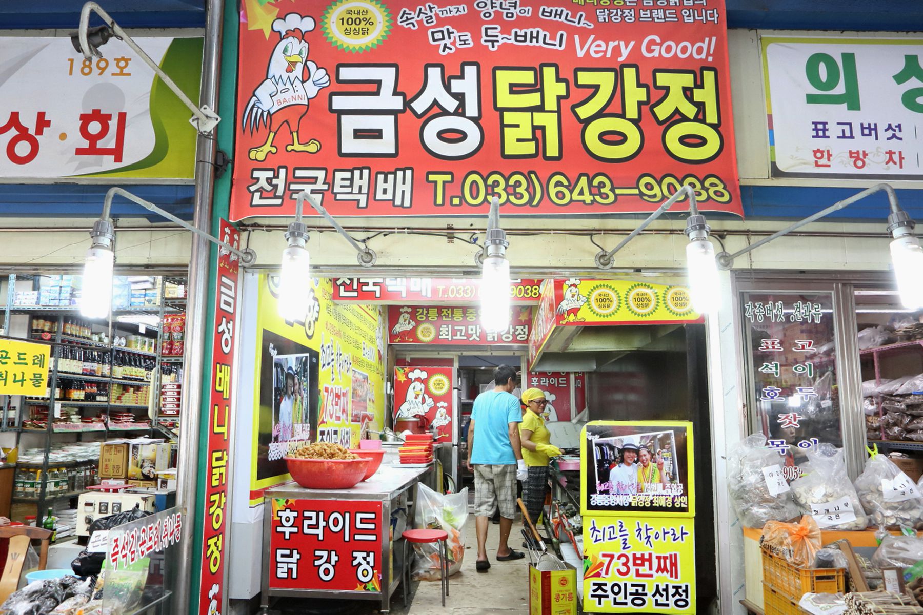 강릉 중앙시장 최고의맛을 자부하는 50년 전통 2대째 금성배니닭강정 입니다.