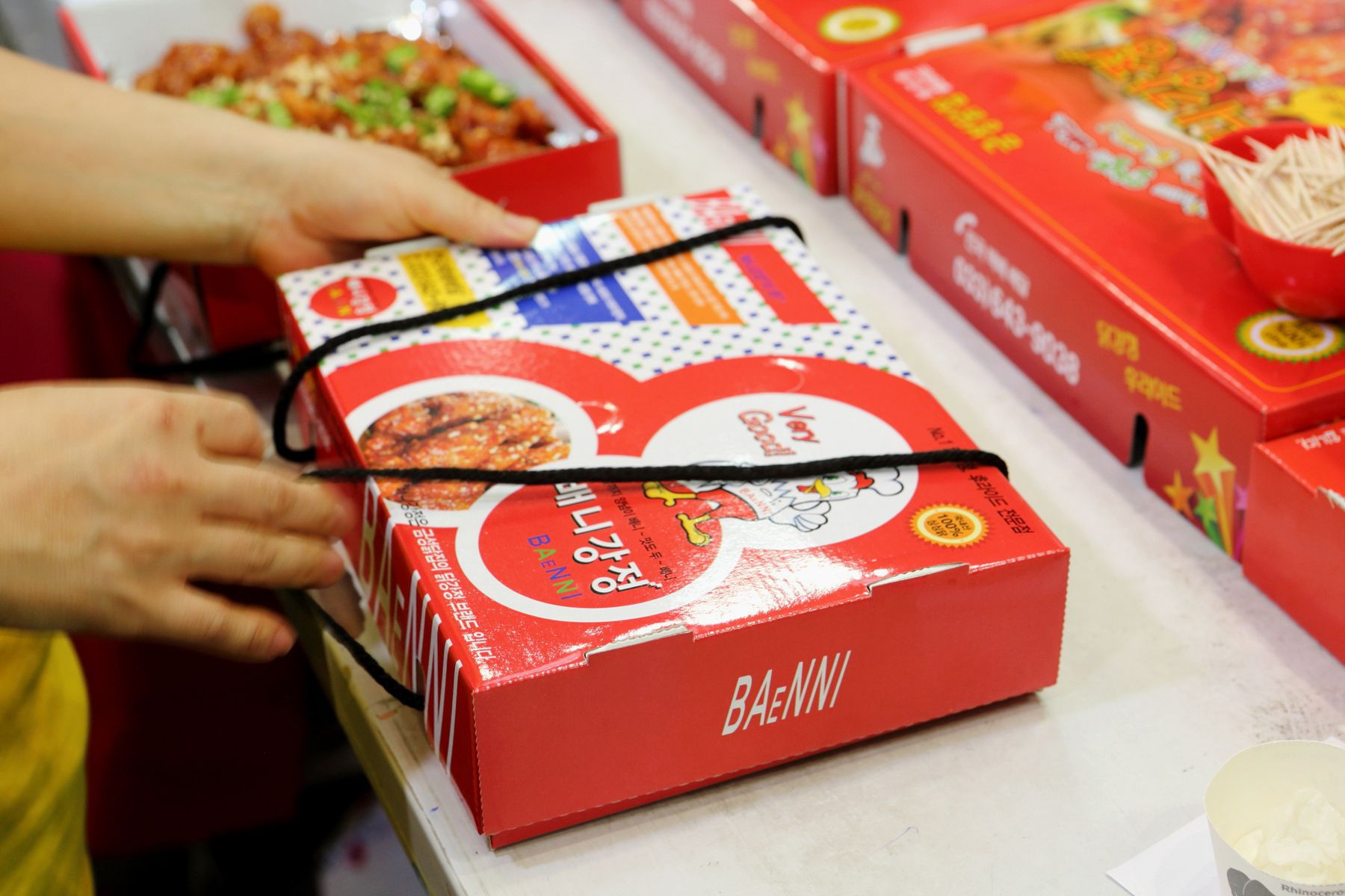 닭강정맛을 보고 지인들 생각에 한 손 가득 포장해 가는 손님들이 많고