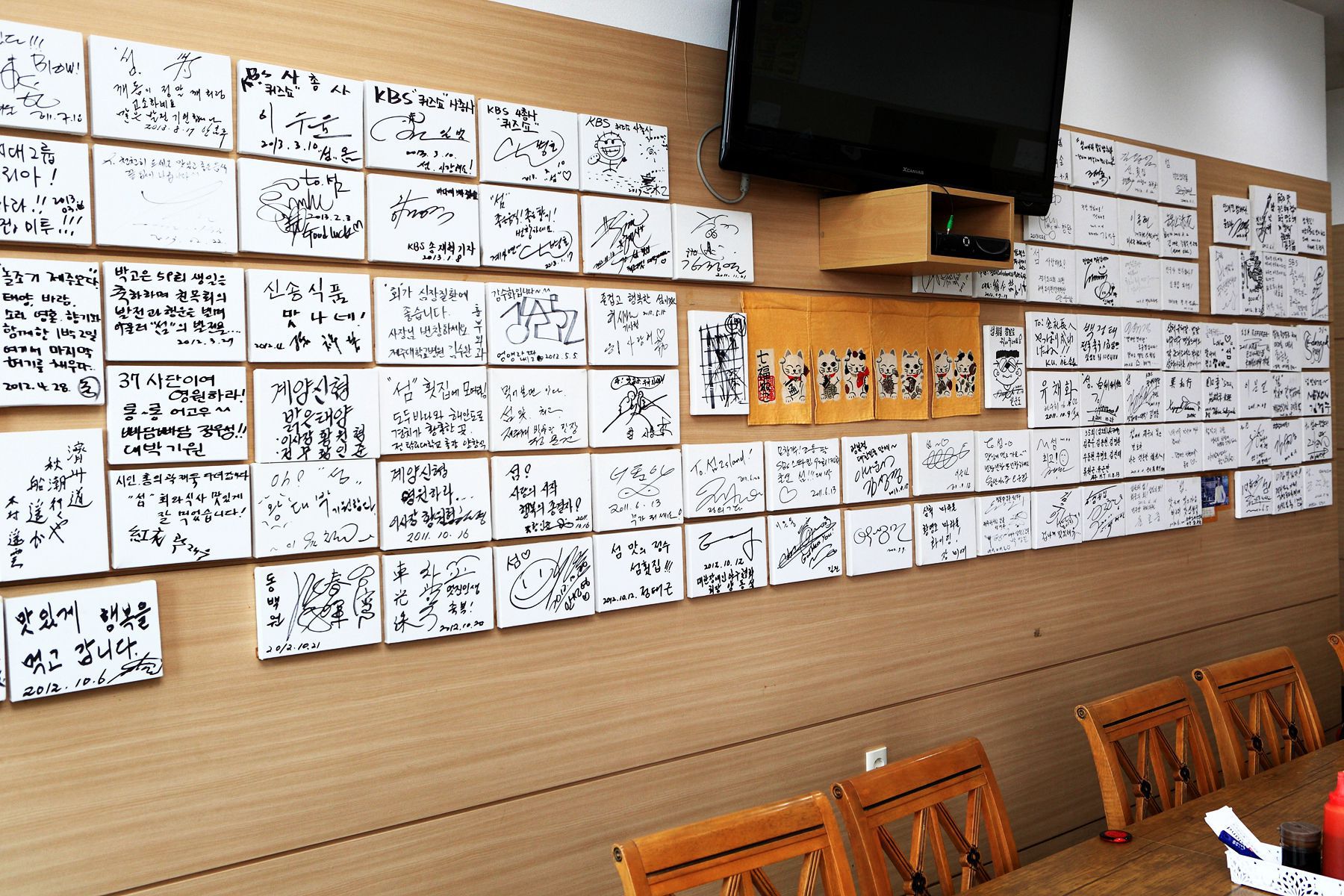한쪽벽에 유명인들의 싸인이 꾸며져 있을정도로 유명인들도 많이 방문한 식당이지요,