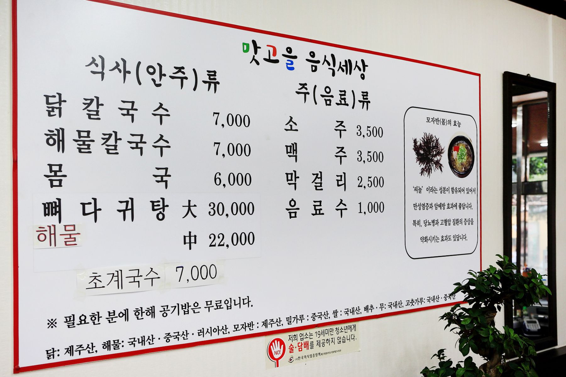 이전에는 해장국업체였지만 지금은 따끈한 국물에 면발이 생각나면 잊지 않고 찾게 되는 칼국수와 칼칼한 국물이 끝내주는 뼈다귀탕이 대표적인 메뉴로