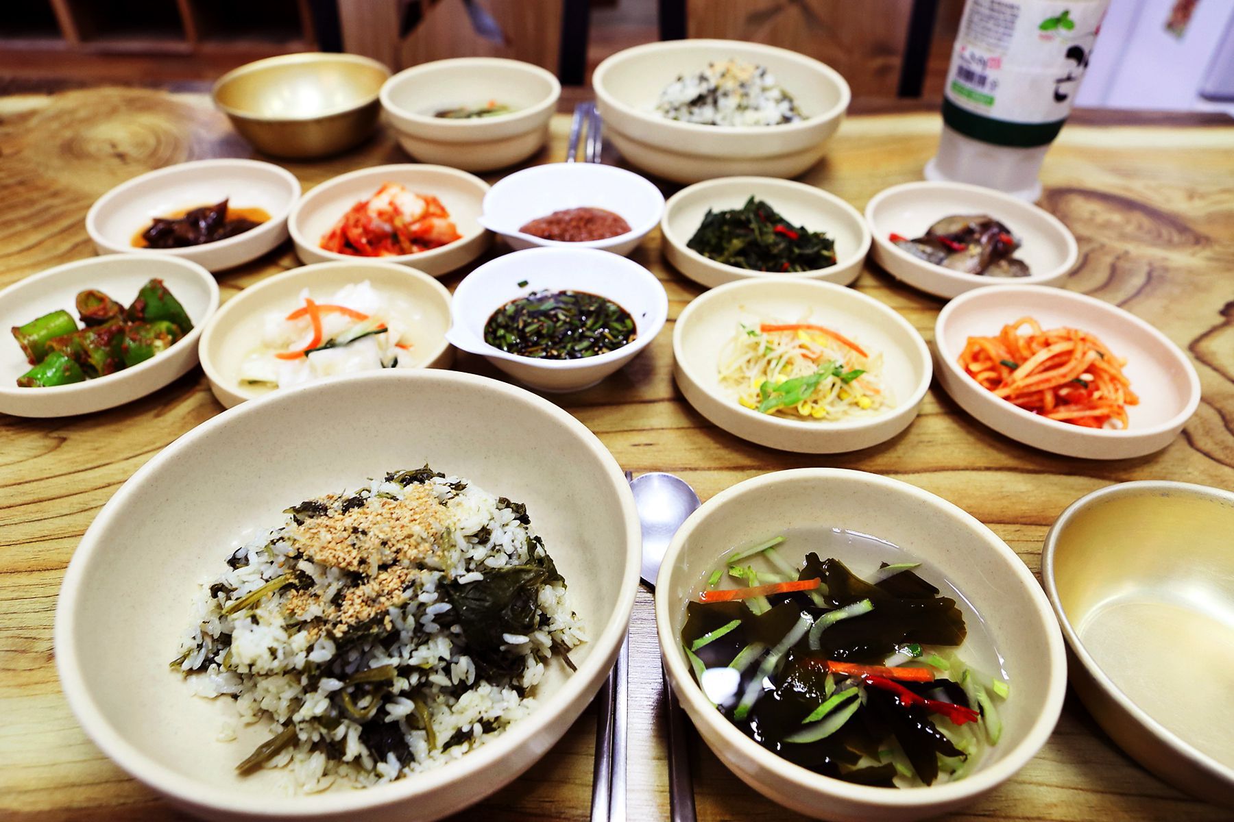 곤드레 나물을 가득 넣어주는 나물밥은 간장 양념과 막장으로 만든 된장 소스 두가지가 나와 취향에 따라 골라 비벼 먹을 수 있고