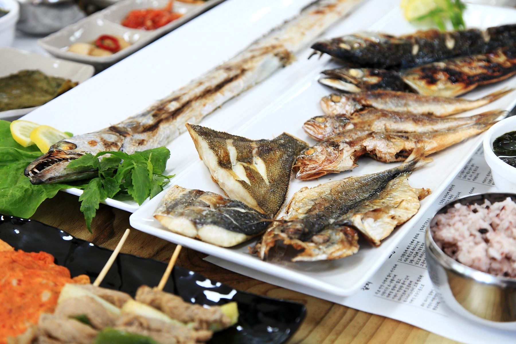 주메뉴인 모듬 생선구이로 6가지 생물갈치, 고등어, 삼치, 참조기등을 다양하게 한번에 즐길 수 있습니다.