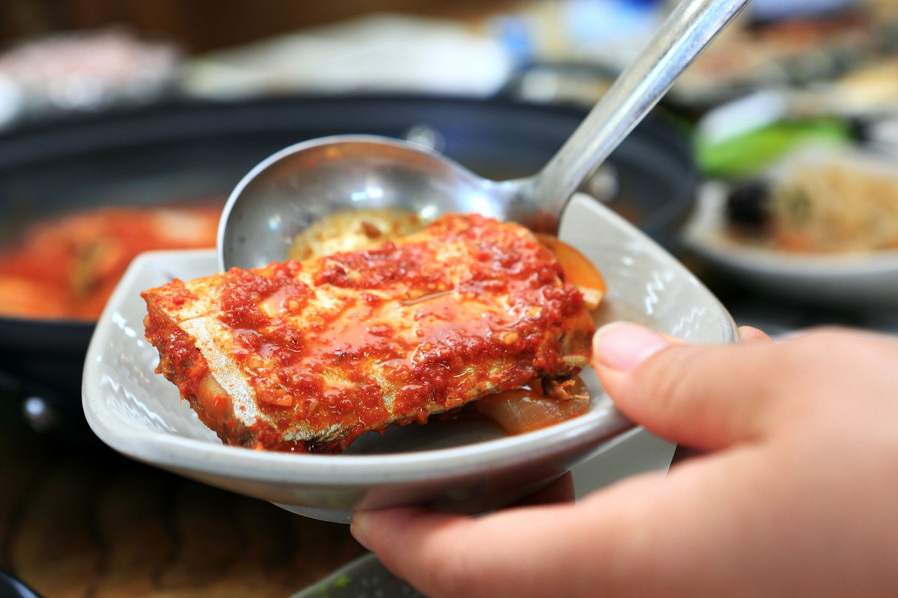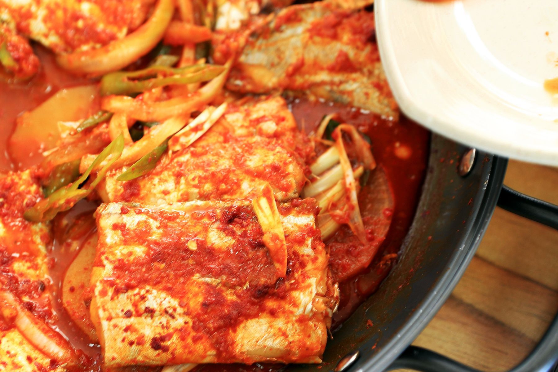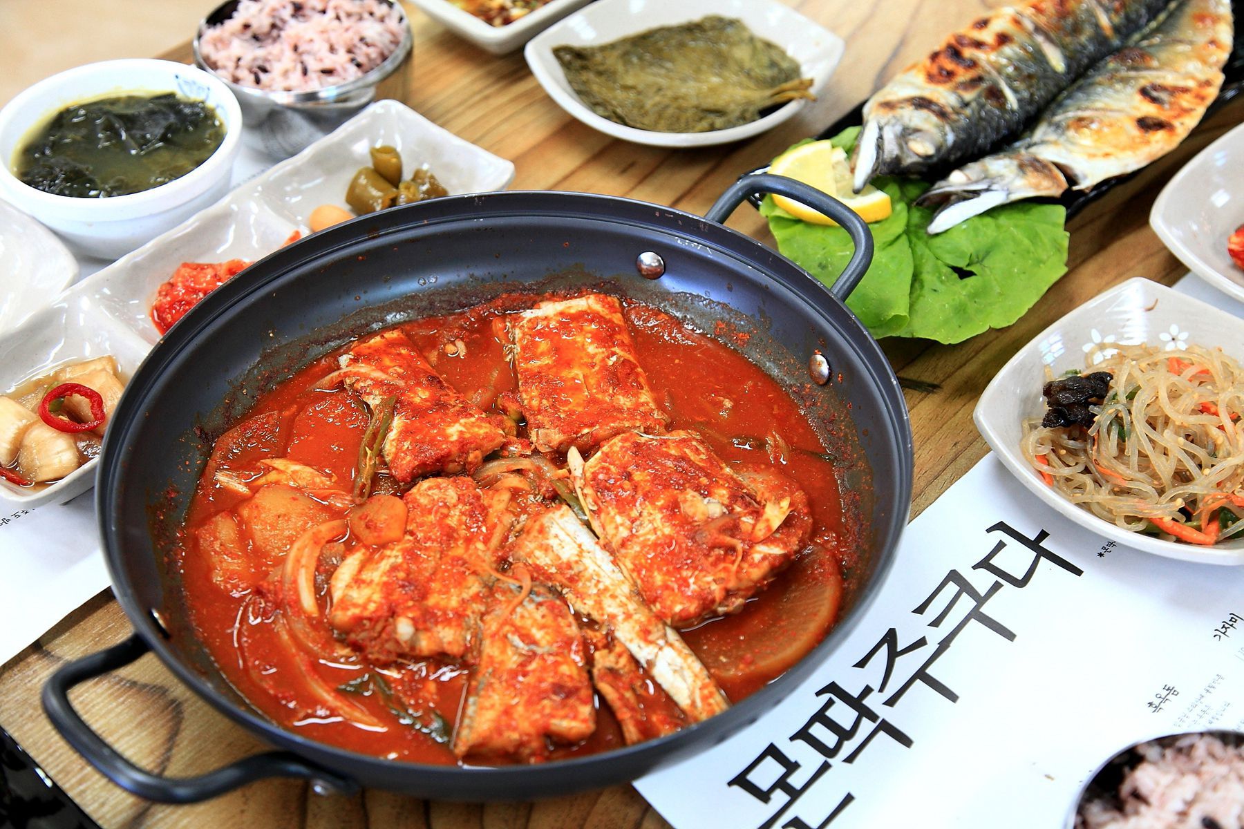 고등어와 큼지막한 묵은지가 통으로 들어 있는 고등어김치찜은