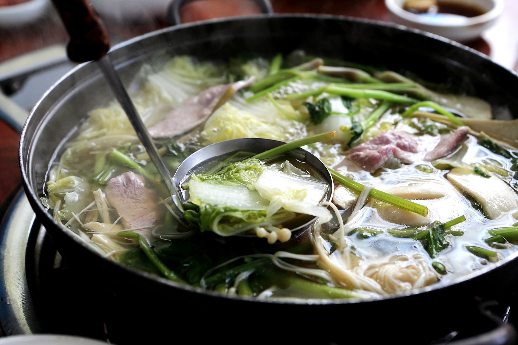 다양한 야채와 재료들이 들어가 깔끔하고 개운한맛이 나는 육수에 신선한 고기를 살짝 넣어 먹는 샤브샤브는