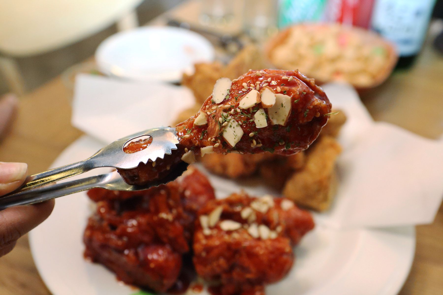 고소한 마늘에 달콤하고 짭조름한 간장소스 거기다가 매콤함까지 치킨에 더해져