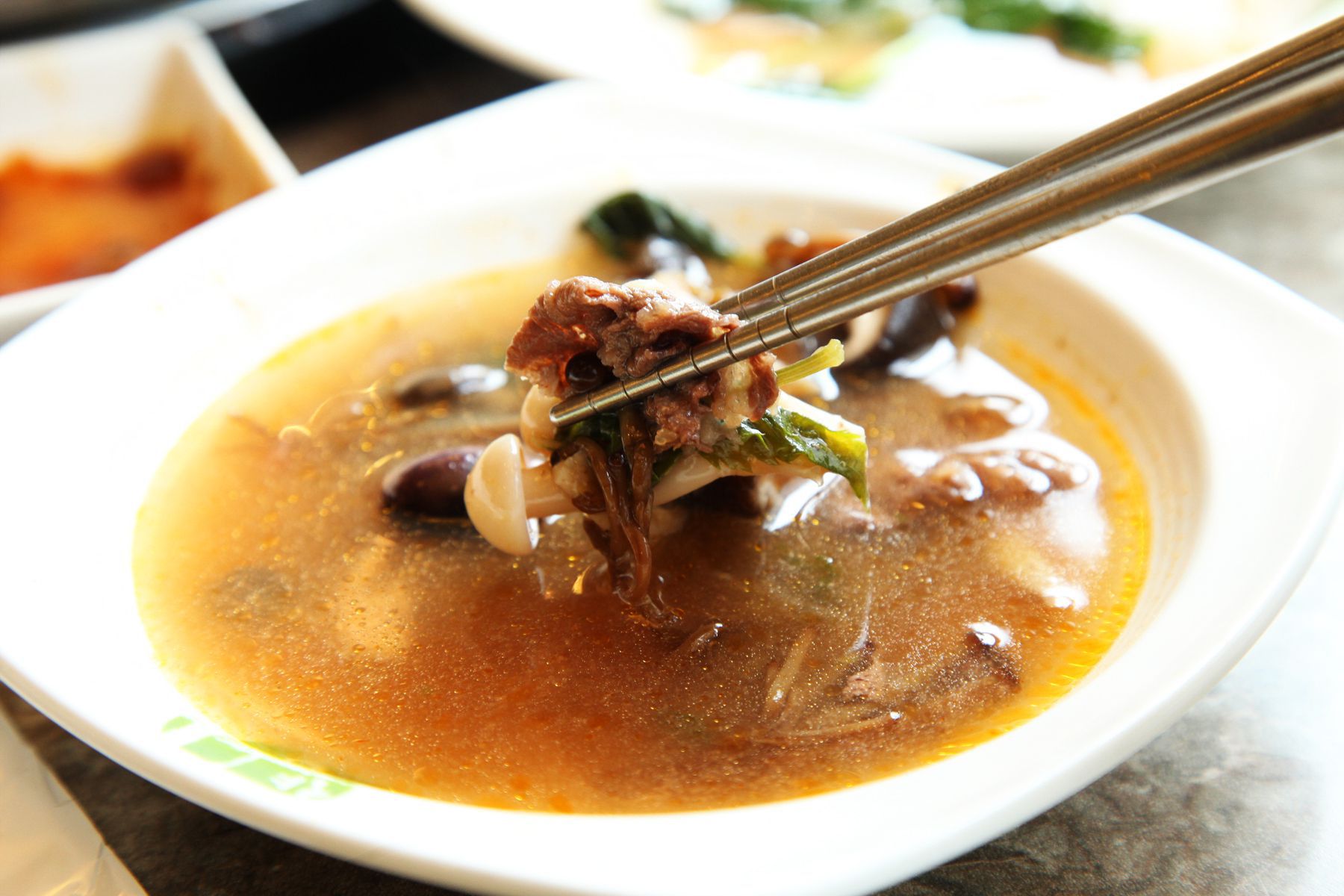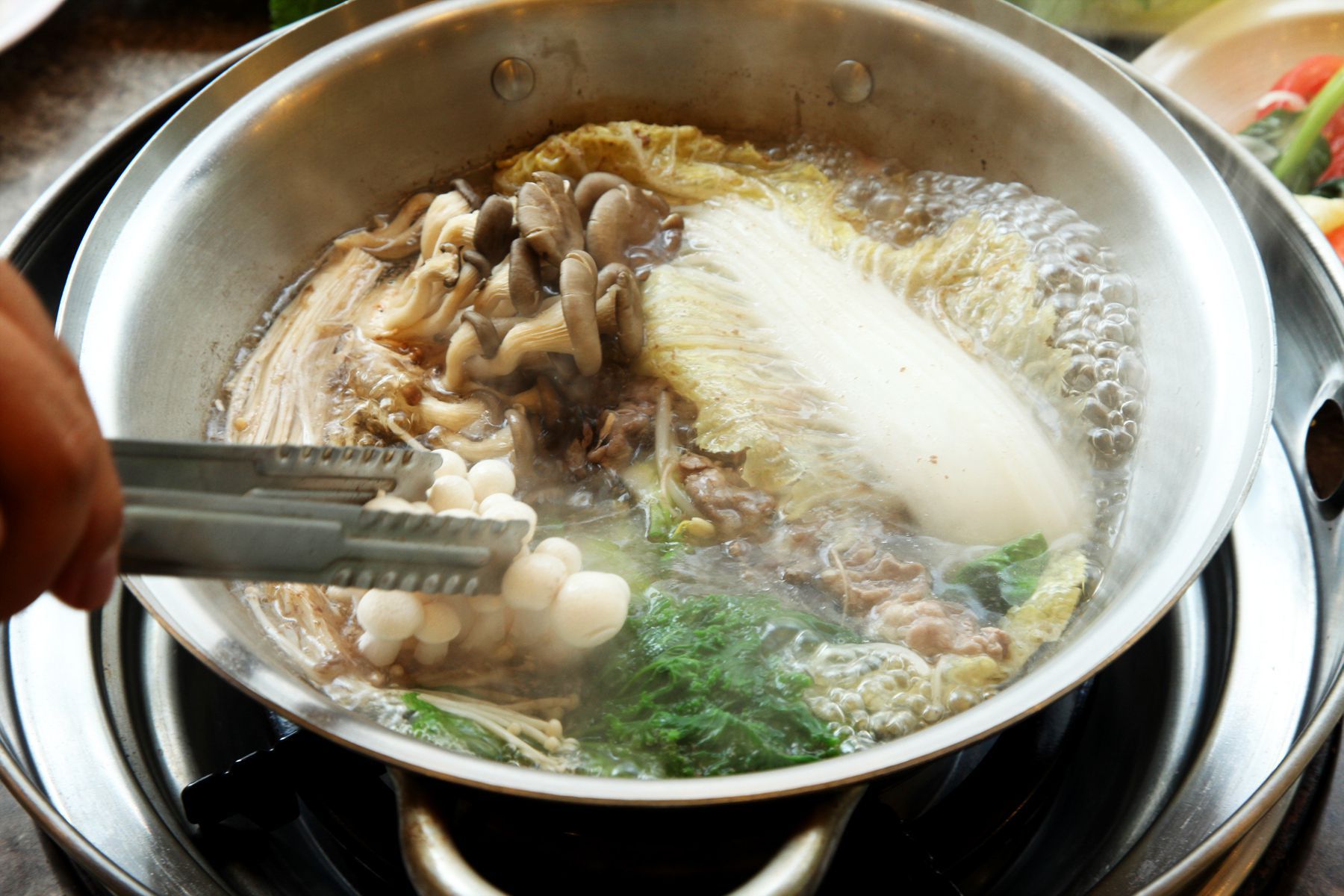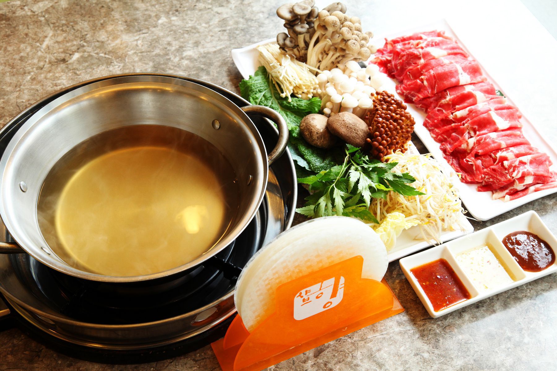 개운하고 담백한 육수에 각종 채소와 소고기,해물 등을 넣어 데쳐 먹는 샤브샤브는