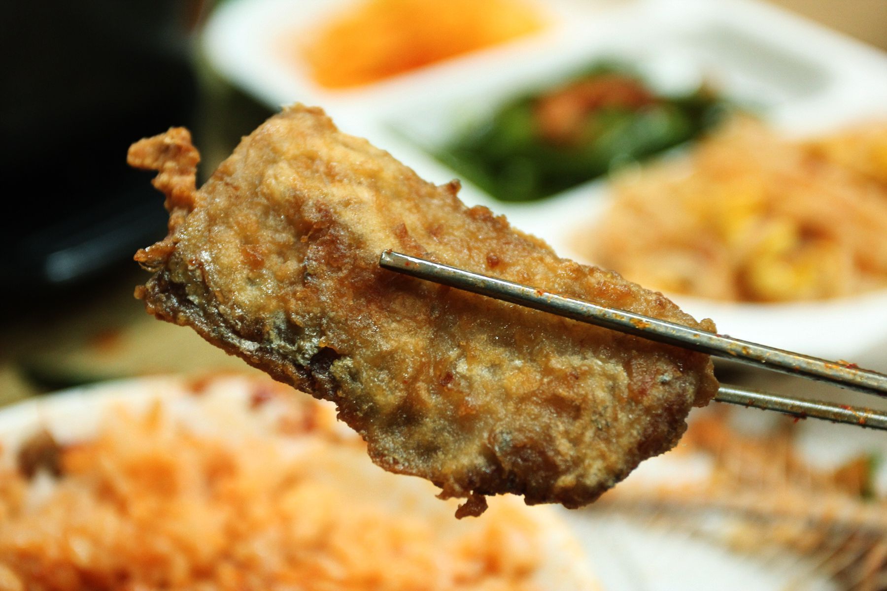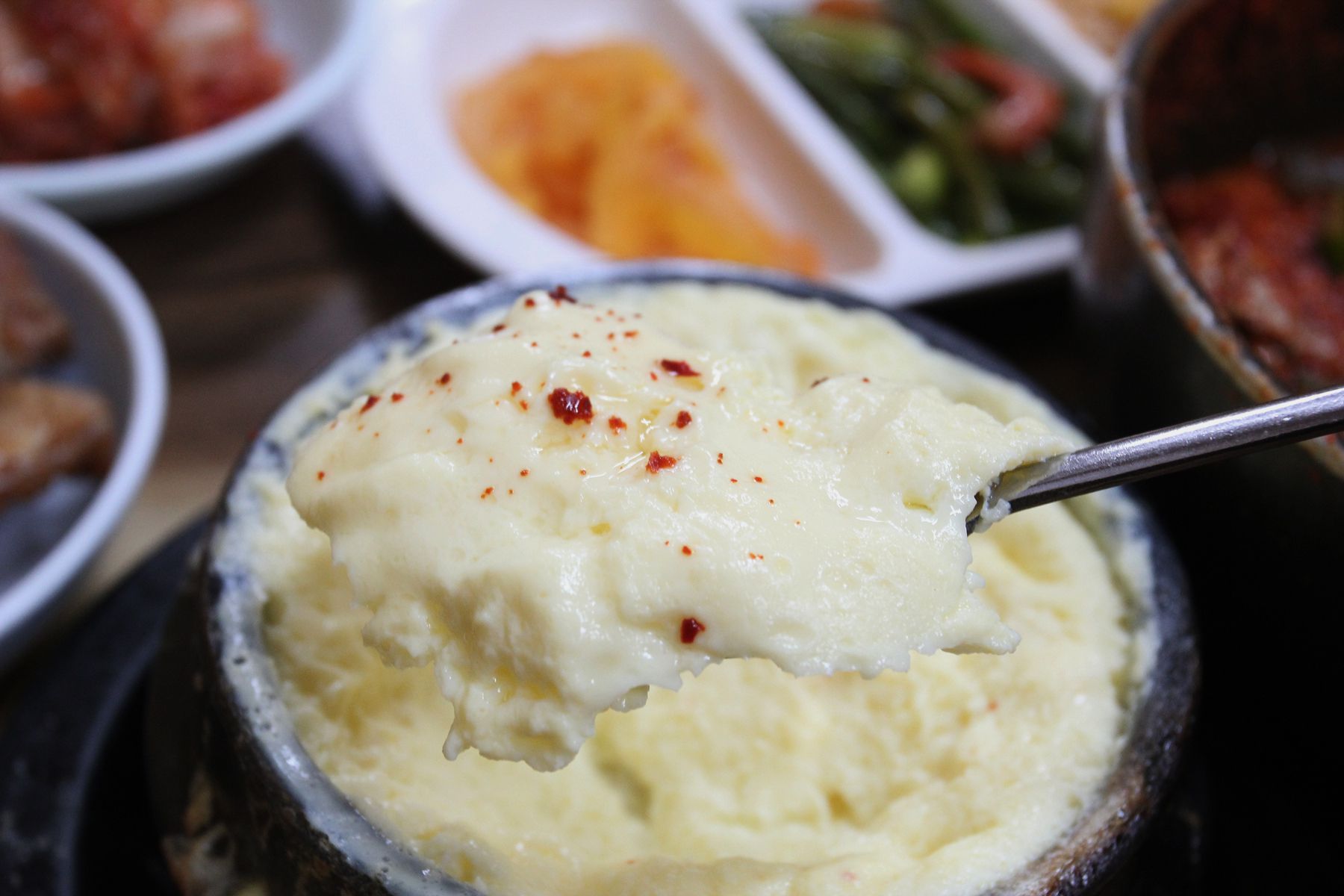 부드럽고 넘칠것 같은 푸짐한 계란찜과 바삭한 갈치 튀김은