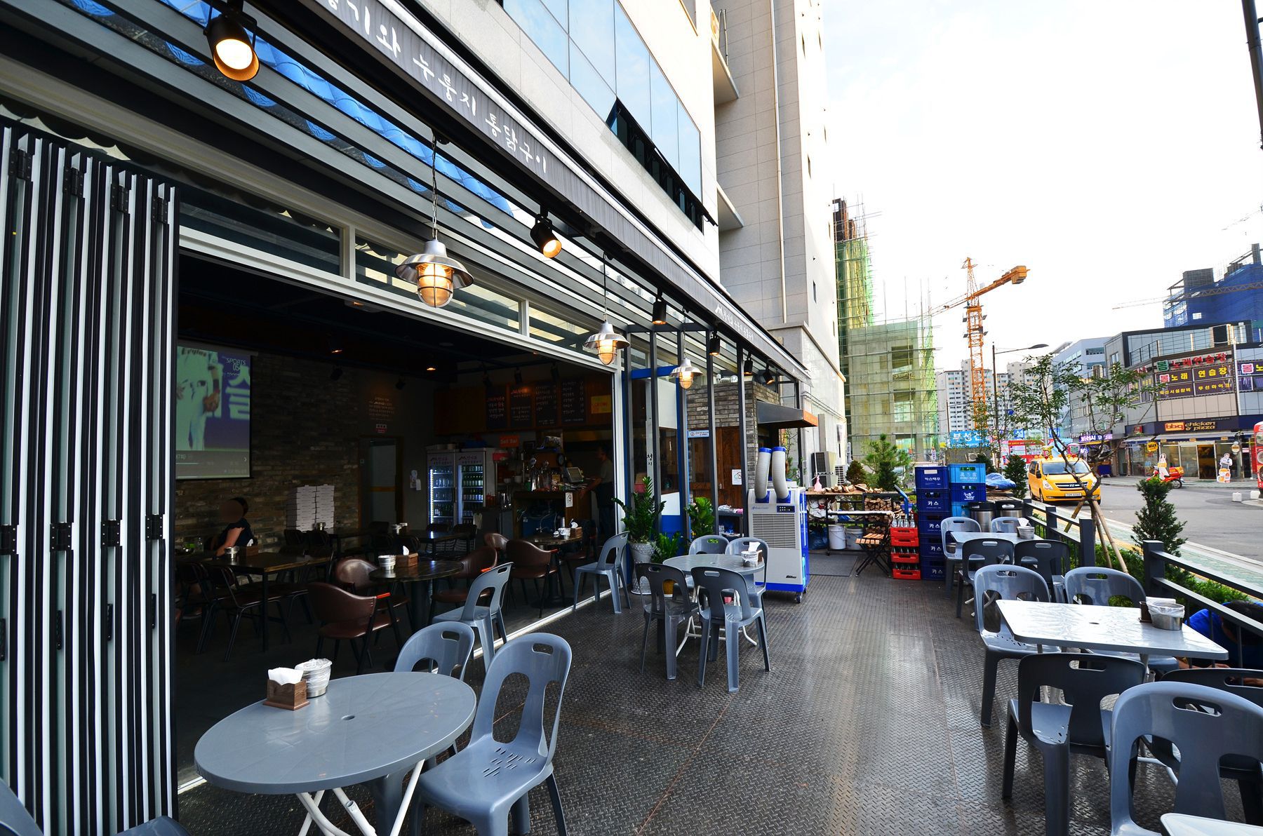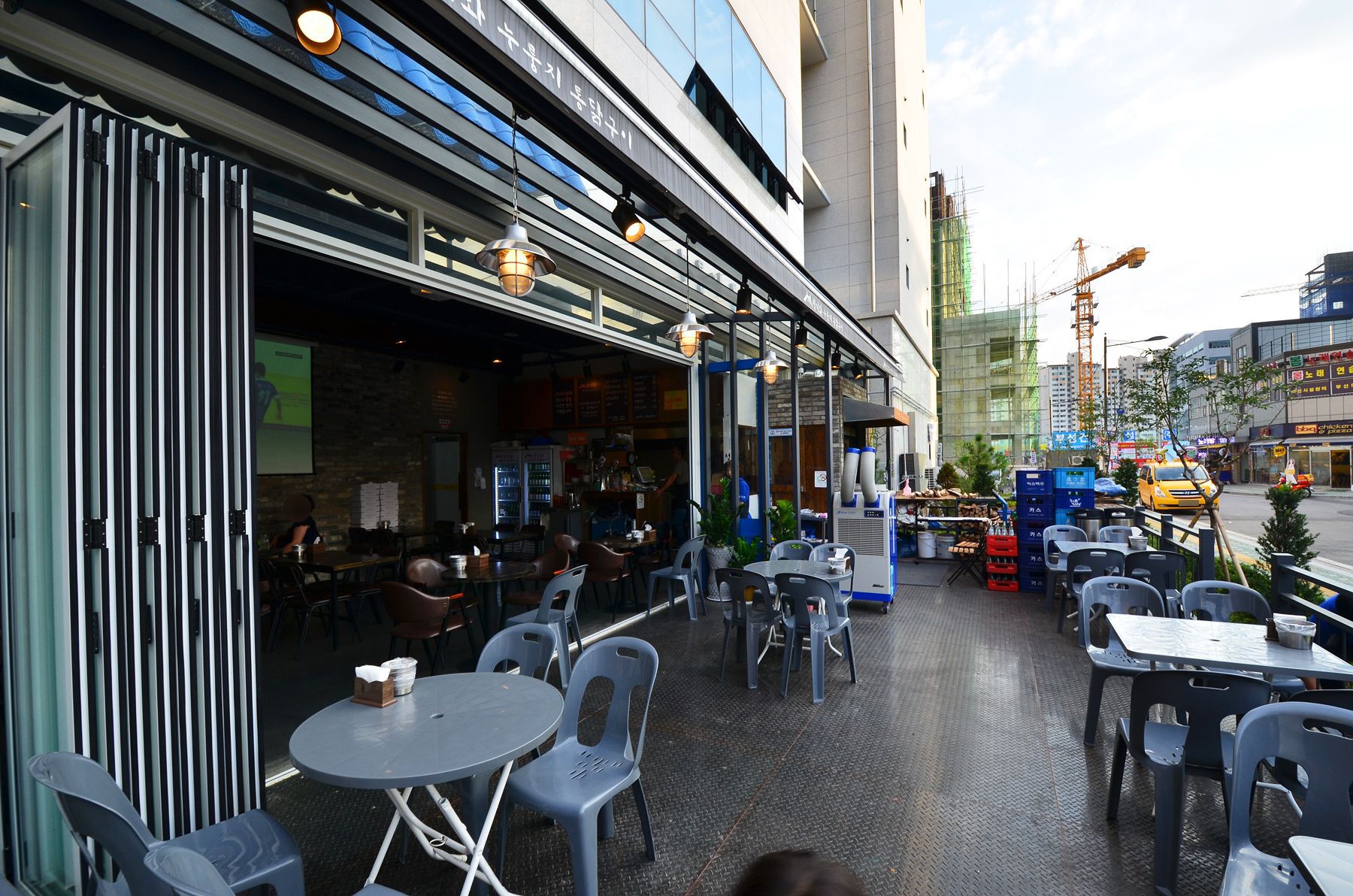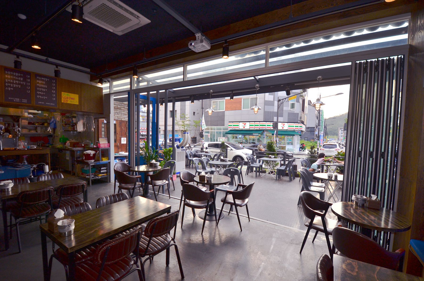 넓은 데크와 폴딩도어를 사용하여 게절과 날씨에 따라 다양한 분위기로 변화하는