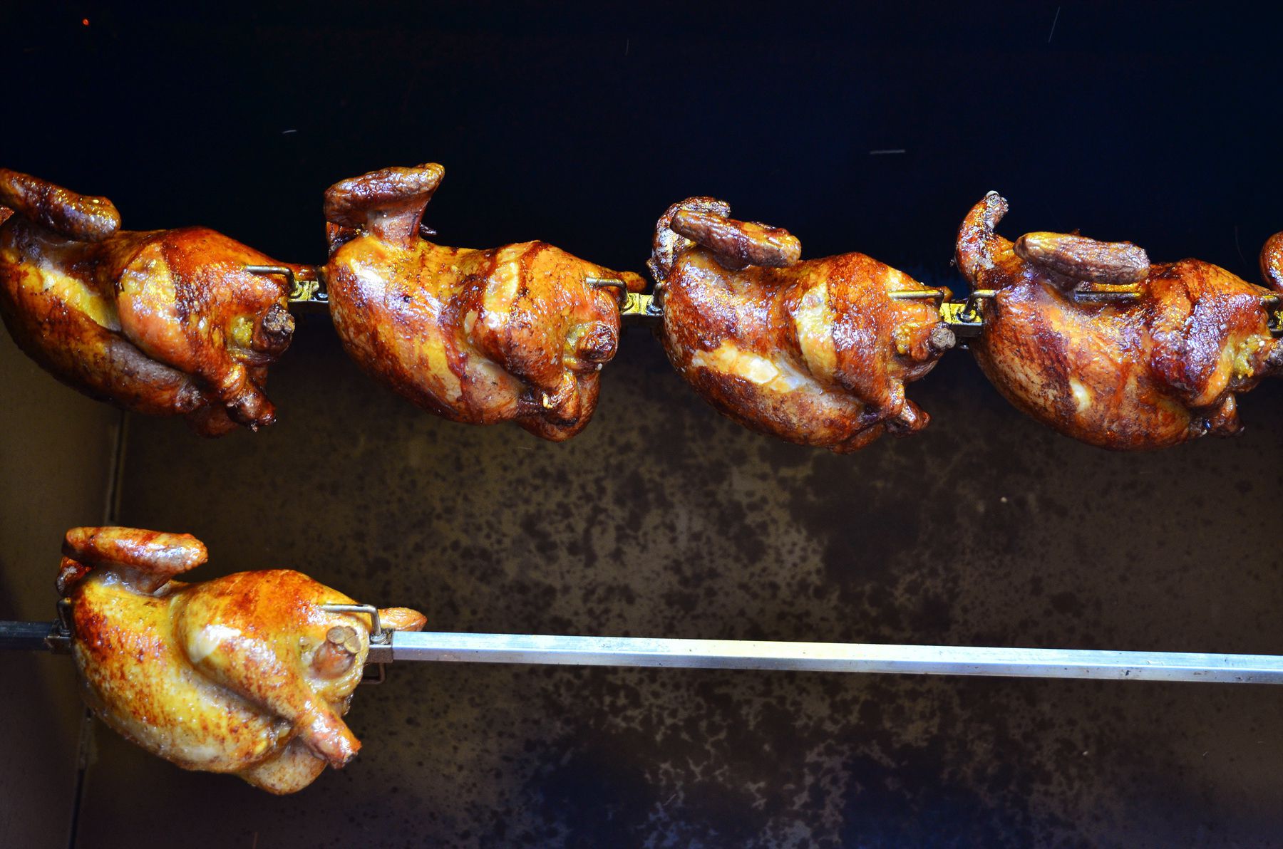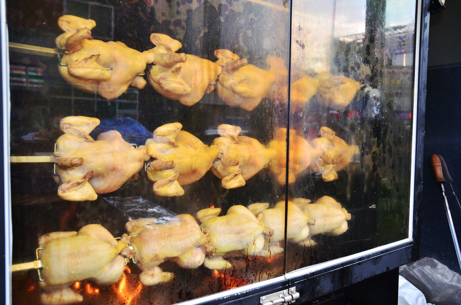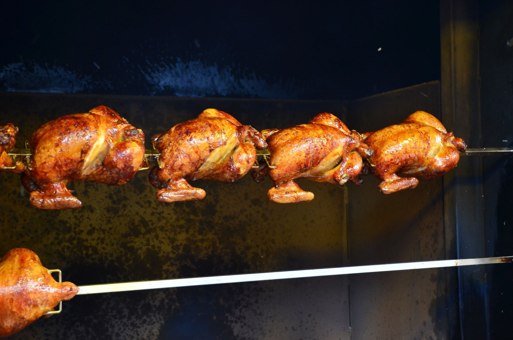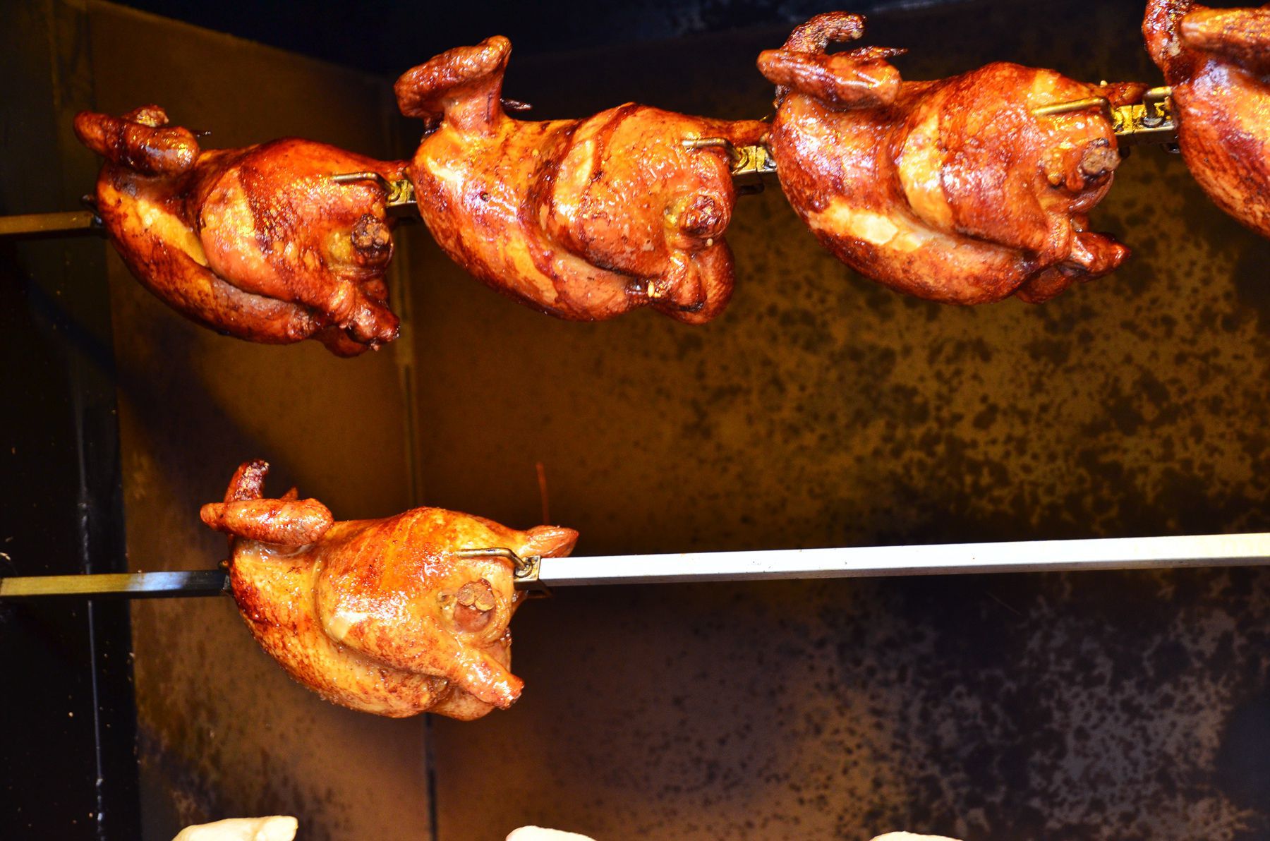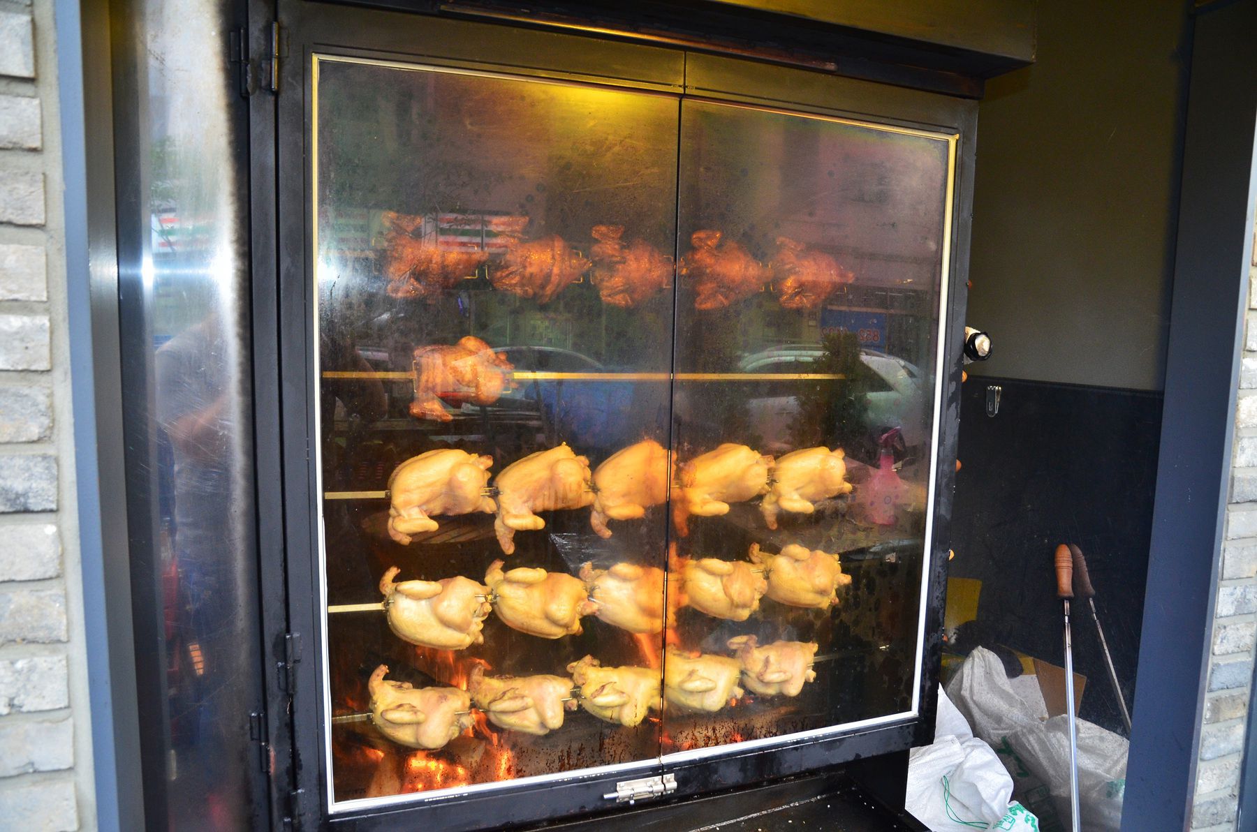 직화 오븐에서 통으로 노릇노릇하게 구워내는 통닭은