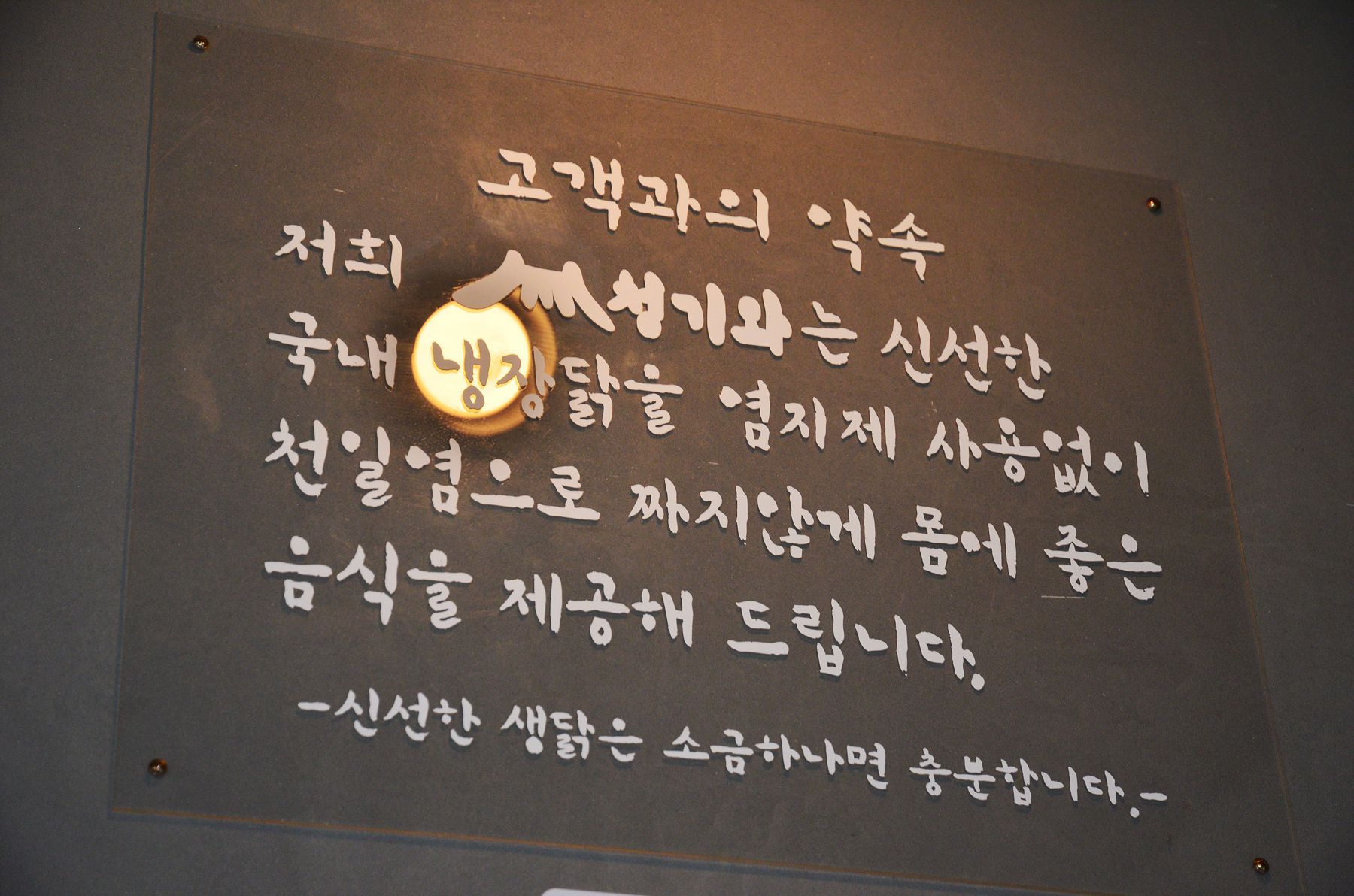 신선한 냉장닭을 염지없이 사용하고 그 신선함이 바탕으로 장작을 이용한