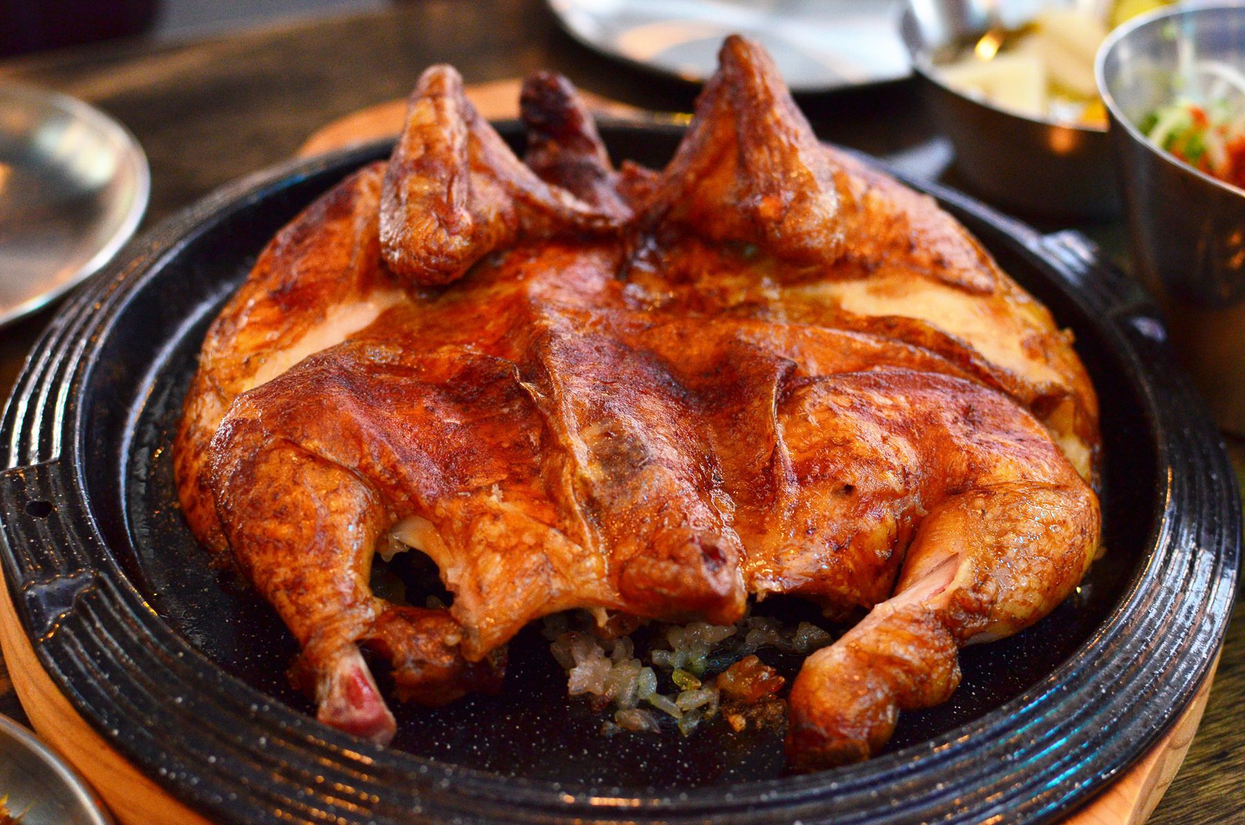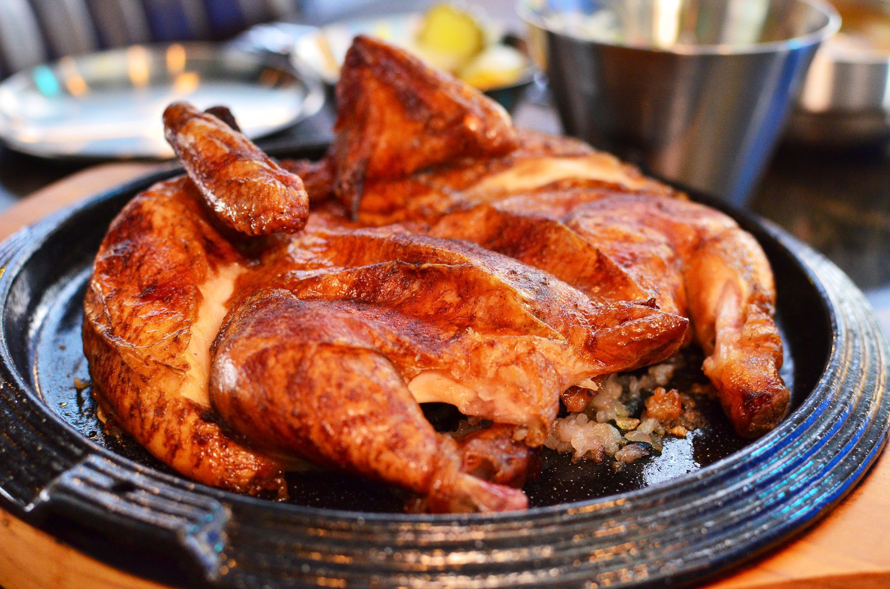 신선한 생닭을 한마리 통째로 담백하게 제대로 구이한 '청기와 누룽지통닭구이' 는