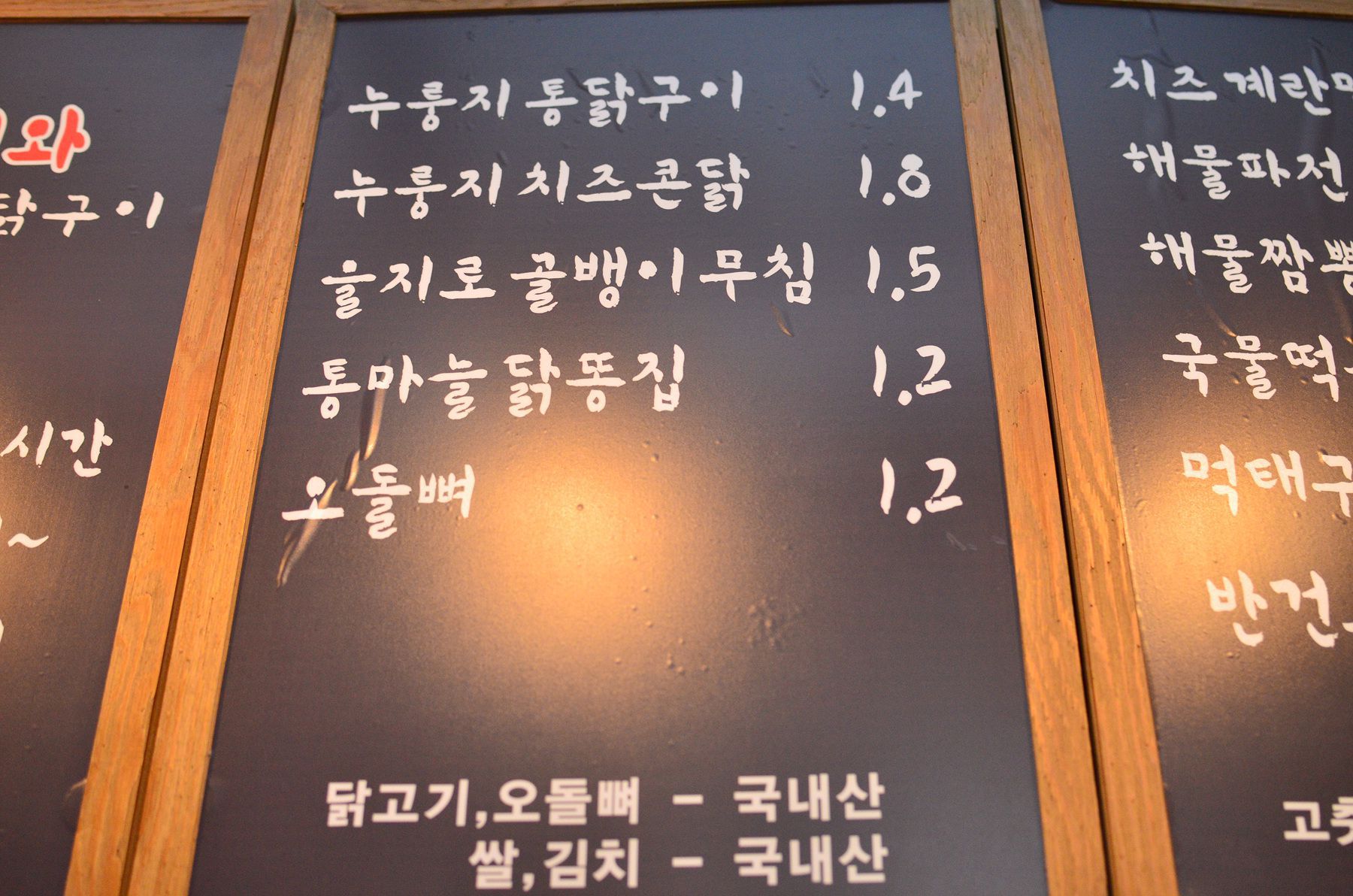 치맥을 즐길 수 있는 '청기와 누룽지통닭구이' 에서는 다양한 안주메뉴가 준비되어있습니다.