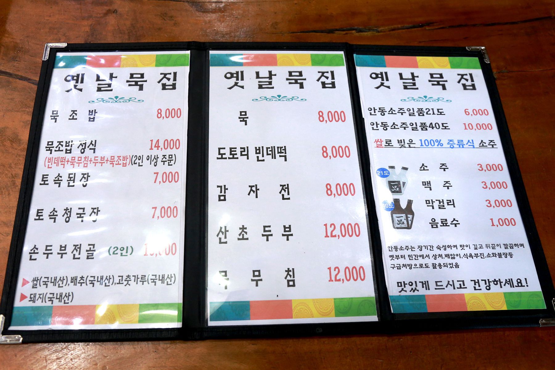옛날묵집의 주메뉴는 '묵'이랍니다.