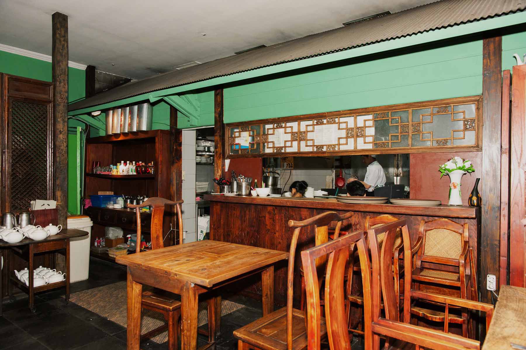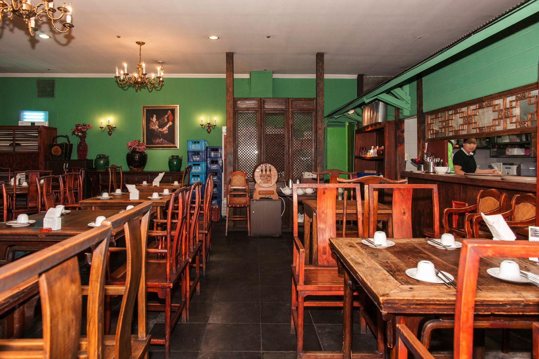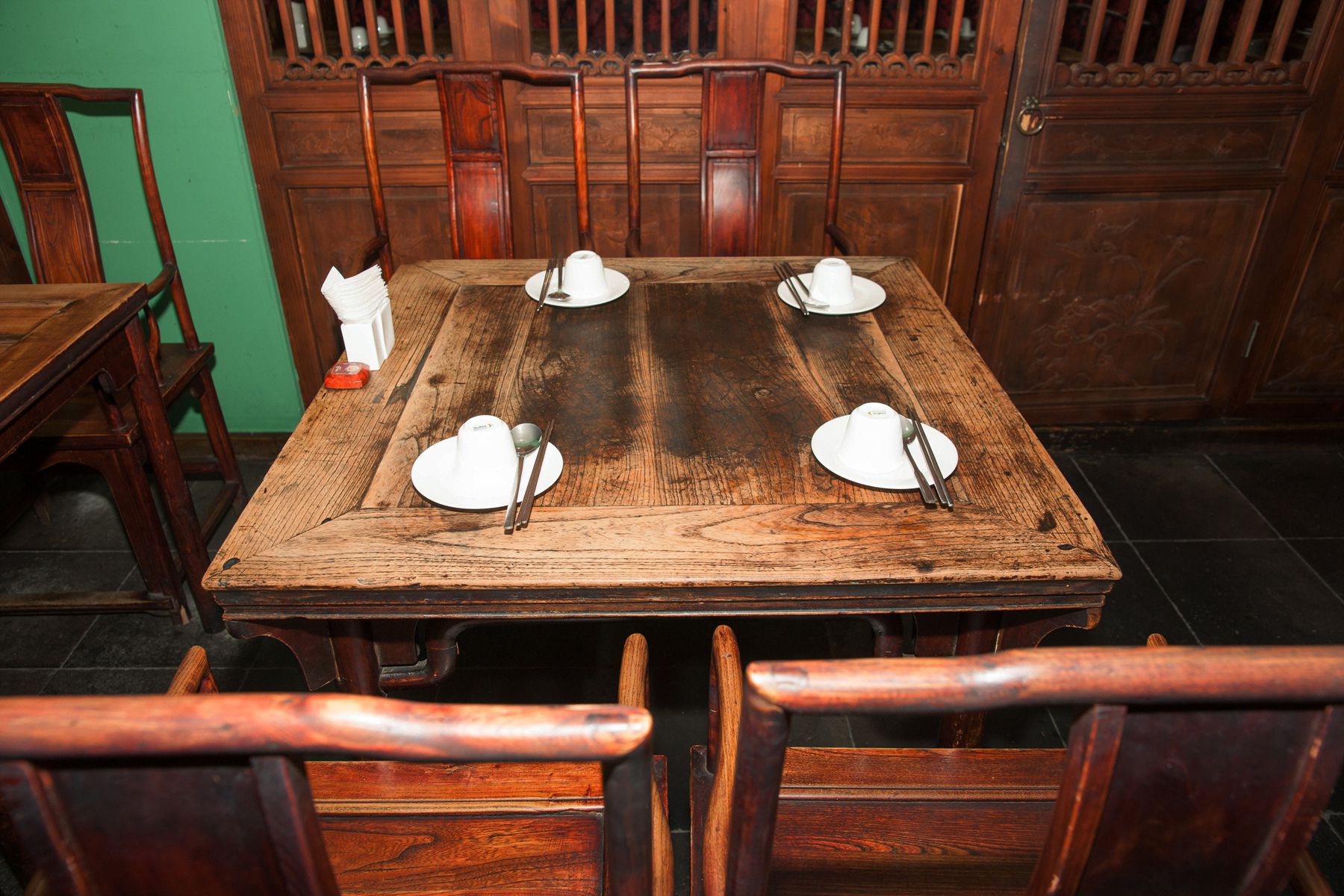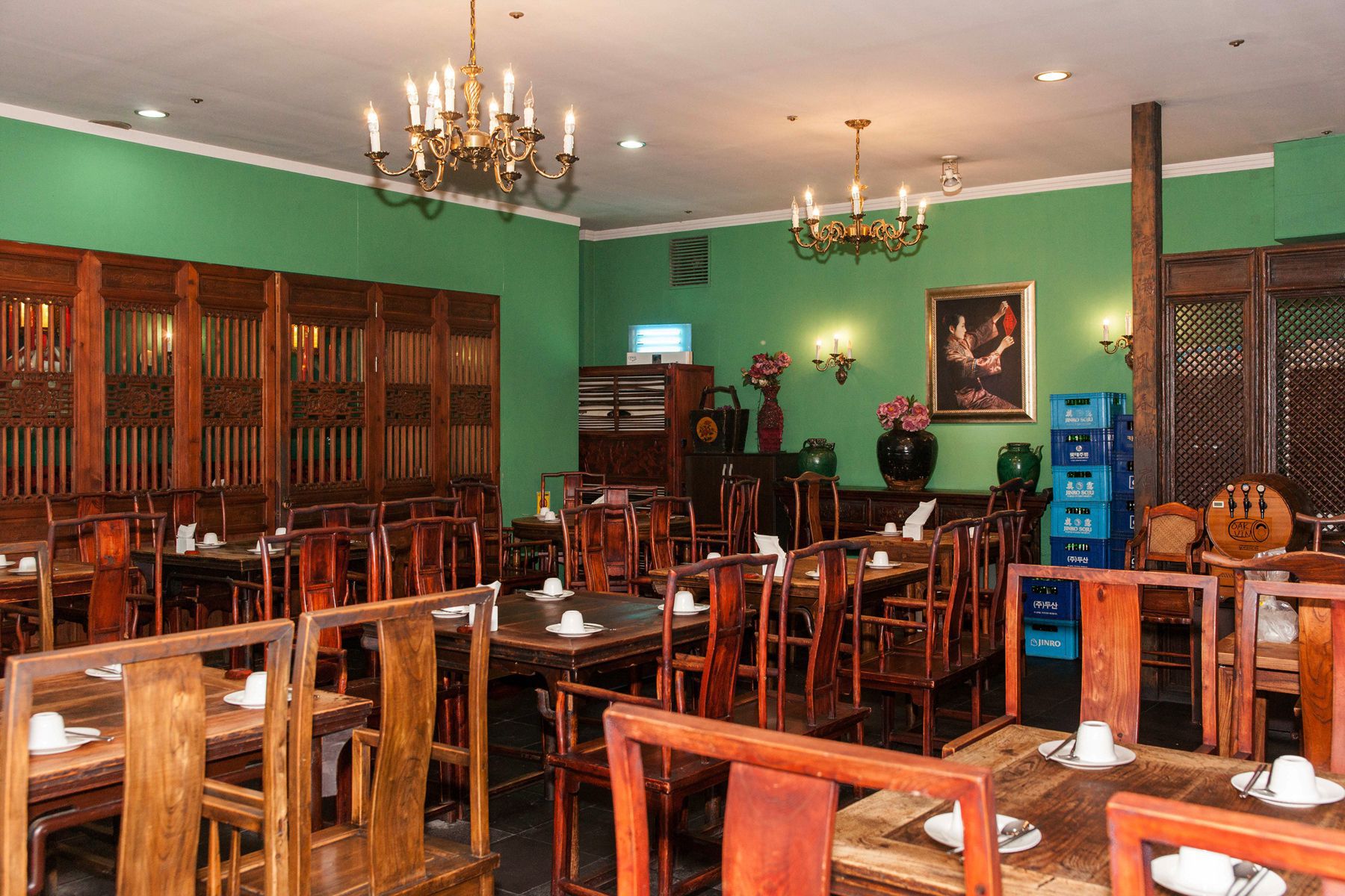 중식당하면 떠오르는 레드와 보색인 그린을 적절히 믹스매치하고 빈티지한 느낌의 식탁과 의자